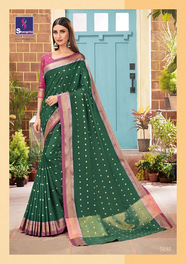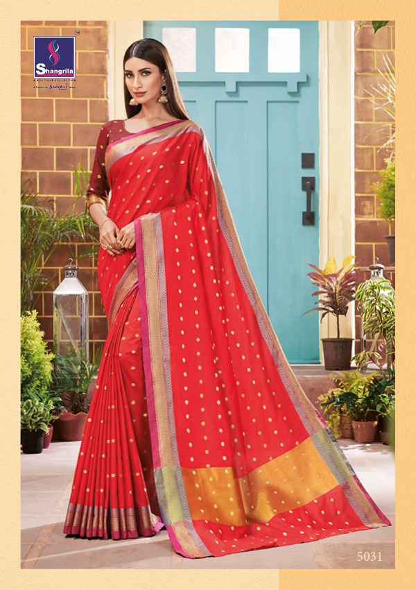 BAANI Shangrila Presents the new trend of weaving sarees with contrast border and Blouse. Feel the new range of sarees with weaved sarees of Shangrila. 6 pcs 695/- Set to set only 5% GST |