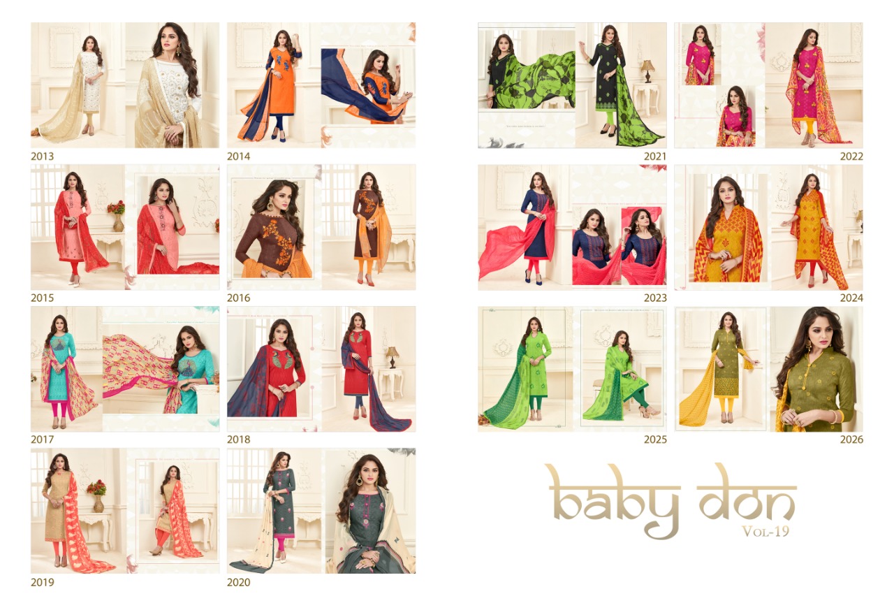 Buy Online Baby Don Vol 19 By Ravi Creation 2013 Series Fancy Bombay Cotton Salwar Kameez Catlog Wholesaler Surat 14 Pcs of Full Catalogue at Wholesale Price. Looking for Baby Don Vol 19 By Ravi Creation 2013 Series Fancy Bombay Cotton Salwar Kameez Catlog Wholesaler Surat Full Catalouge at Best Price? Buy Now Baby Don Vol 19 By Ravi Creation 2013 Series Fancy Bombay Cotton Salwar Kameez Catlog Wholesaler Surat at Wholesale Rate of Rs 6090 with Total 14 Pcs from authroized dealer and supplier of Brand. Cost of Each piece is just only Rs 435 which is very low and affordable price to resale the product in your retail store ,This is Surat based Wholesale Supplier & Dealer of Brand. Click on Brand name to Know more about Brand's products.Call or Whatsapp on 9898838984 for booking or enquiry