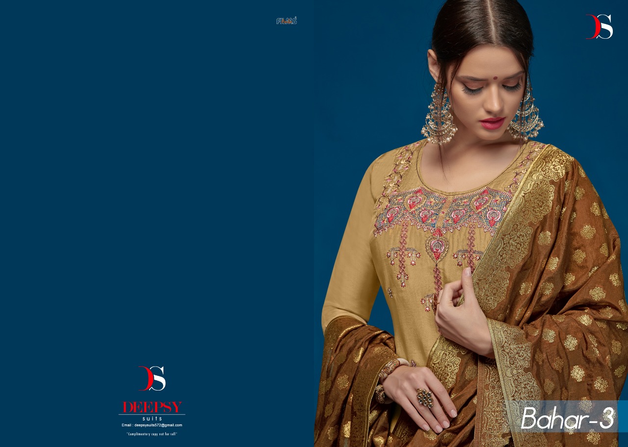 Buy Online Bahar Vol 3 By Deepsy 3001 Series Party Wear Viscose Opada Silk Salwar Kameez Catlog Wholesale Dealer Surat 5 Pcs of Full Catalogue at Wholesale Price. Looking for Bahar Vol 3 By Deepsy 3001 Series Party Wear Viscose Opada Silk Salwar Kameez Catlog Wholesale Dealer Surat Full Catalouge at Best Price? Buy Now Bahar Vol 3 By Deepsy 3001 Series Party Wear Viscose Opada Silk Salwar Kameez Catlog Wholesale Dealer Surat at Wholesale Rate of Rs 5995 with Total 5 Pcs from authroized dealer and supplier of DEEPSY Brand. Cost of Each piece is just only Rs 1199 which is very low and affordable price to resale the product in your retail store ,This is Surat based Wholesale Supplier & Dealer of DEEPSY Brand. Click on Brand name to Know more about DEEPSY Brand's products.Call or Whatsapp on 9898838984 for booking or enquiry