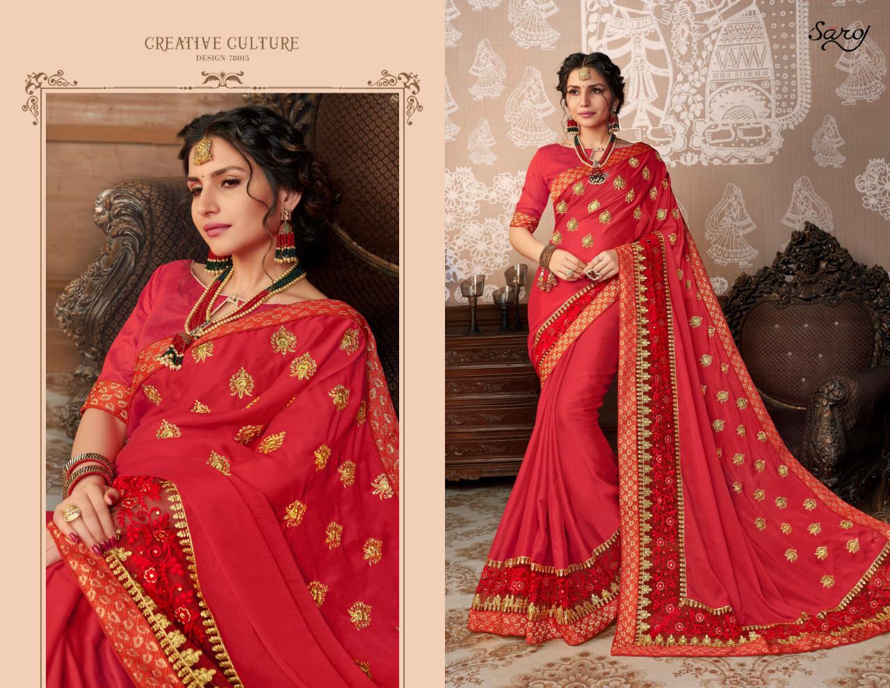 Buy Online Bahurani 2 By Saraoj Rangoli Silk Party Wear Sarees Wholesale Supplier Surat 8 Pcs of Full Catalogue at Wholesale Price. Looking for Bahurani 2 By Saraoj Rangoli Silk Party Wear Sarees Wholesale Supplier Surat Full Catalouge at Best Price? Buy Now Bahurani 2 By Saraoj Rangoli Silk Party Wear Sarees Wholesale Supplier Surat at Wholesale Rate of Rs 7880 with Total 8 Pcs from authroized dealer and supplier of SAROJ SAREE Brand. Cost of Each piece is just only Rs 985 which is very low and affordable price to resale the product in your retail store ,This is Surat based Wholesale Supplier & Dealer of SAROJ SAREE Brand. Click on Brand name to Know more about SAROJ SAREE Brand's products.Call or Whatsapp on 9898838984 for booking or enquiry