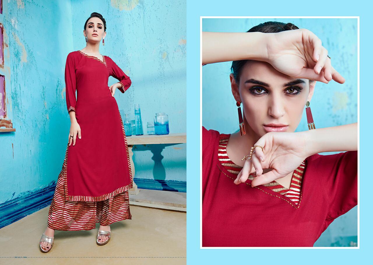 Baleno Vol 5 By S More Fashion 5001 Series Fancy Reyon Kurti With Plazo Collection Wholesaler Surat