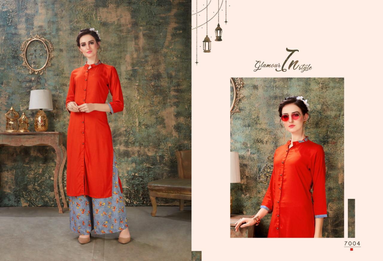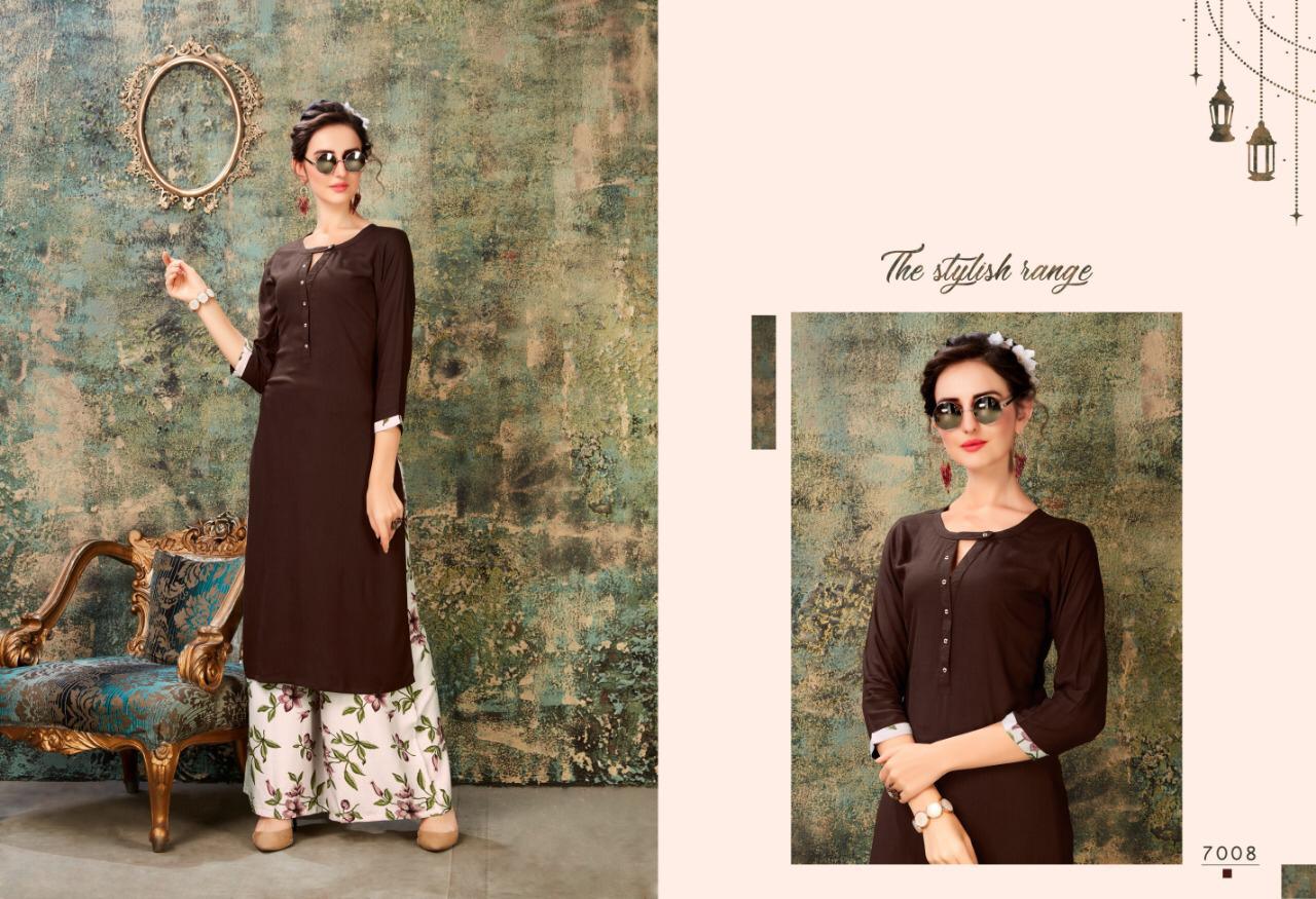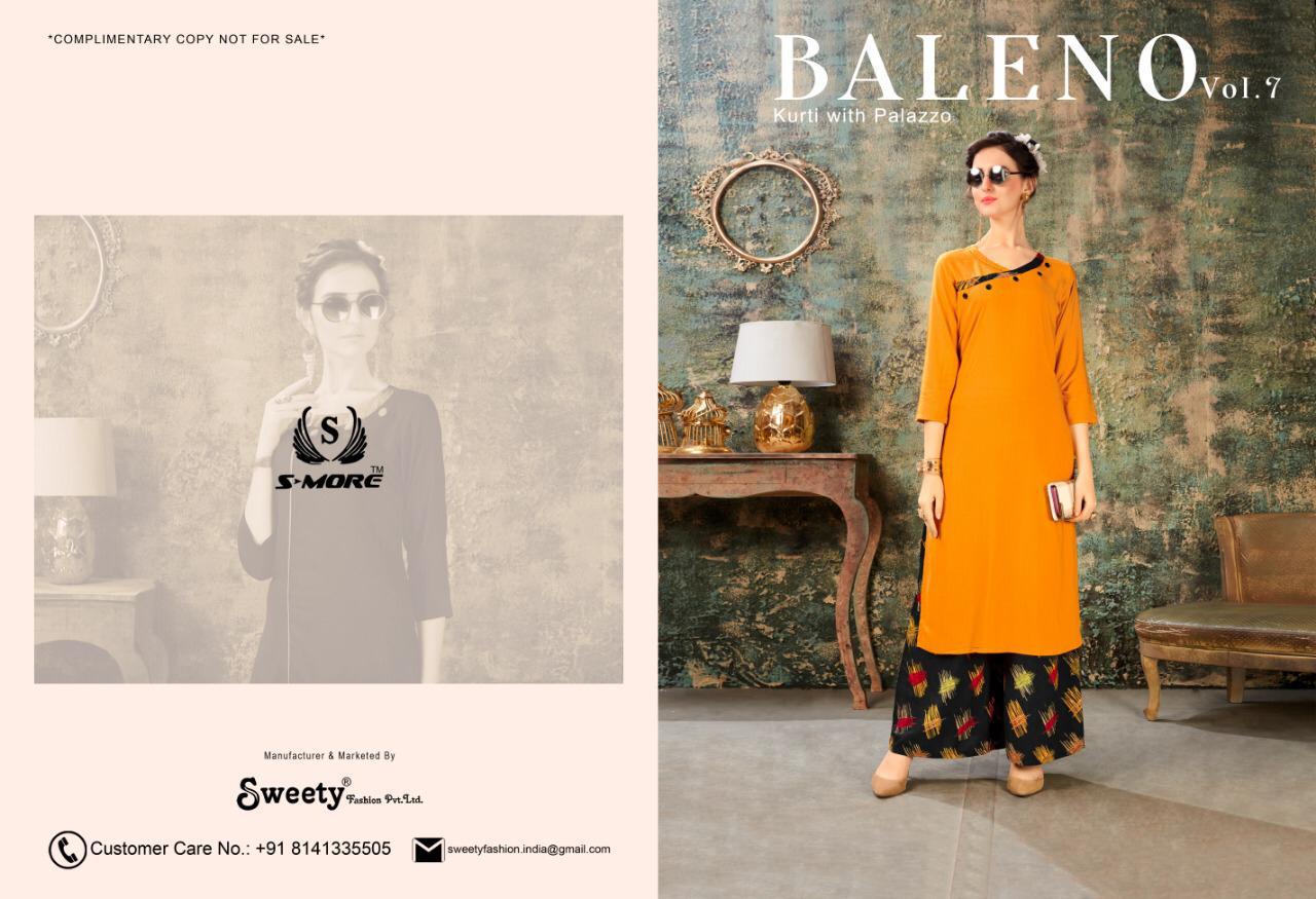 Buy Online Baleno Vol 7 By Sweety Fashion Reyon Slub Kurtis With Plazzo Wholesale Supplier India 8 Pcs of Full Catalogue at Wholesale Price. Looking for Baleno Vol 7 By Sweety Fashion Reyon Slub Kurtis With Plazzo Wholesale Supplier India Full Catalouge at Best Price? Buy Now Baleno Vol 7 By Sweety Fashion Reyon Slub Kurtis With Plazzo Wholesale Supplier India at Wholesale Rate of Rs 5400 with Total 8 Pcs from authroized dealer and supplier of Brand. Cost of Each piece is just only Rs 675 which is very low and affordable price to resale the product in your retail store ,This is Surat based Wholesale Supplier & Dealer of Brand. Click on Brand name to Know more about Brand's products.Call or Whatsapp on 9898838984 for booking or enquiry