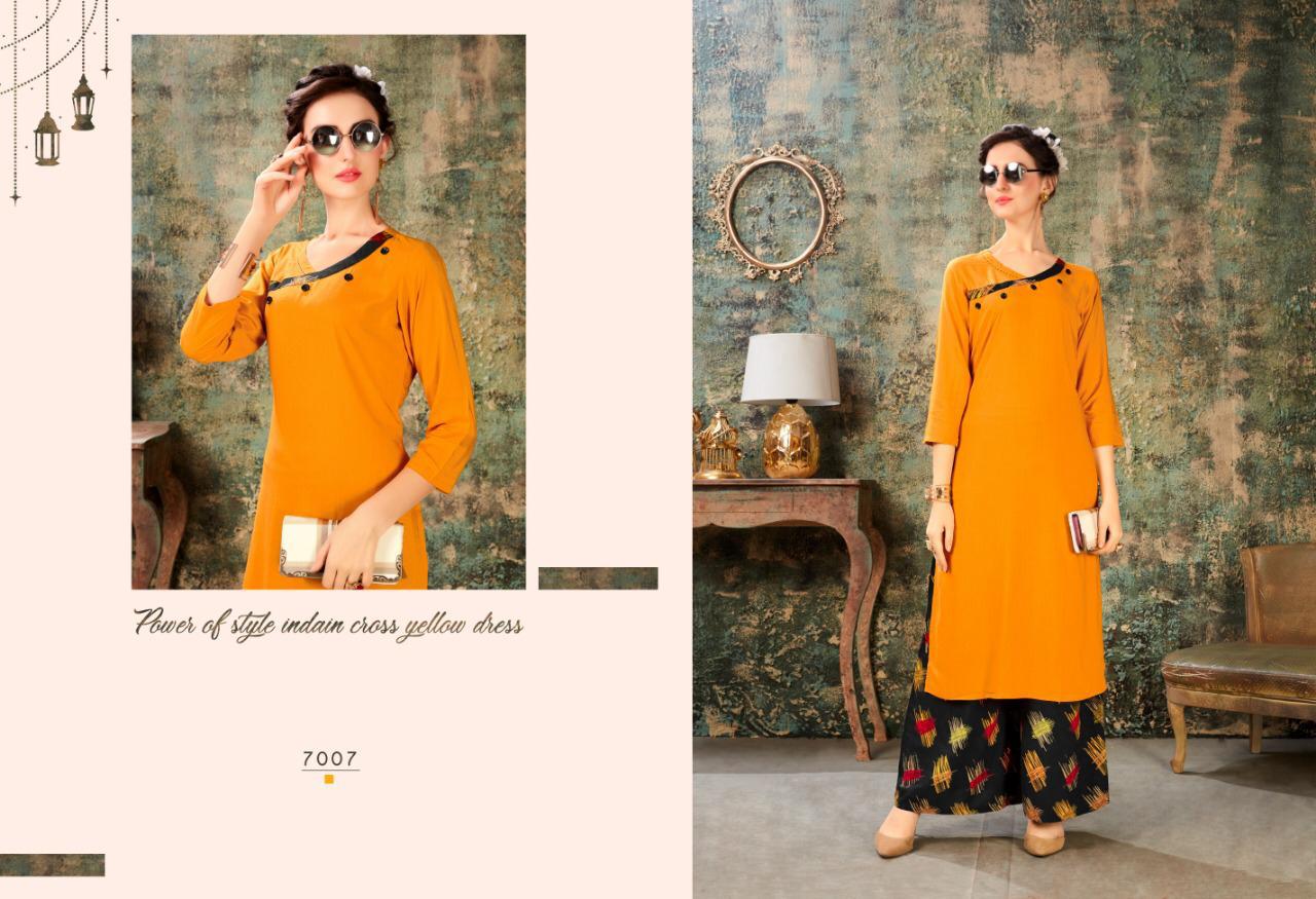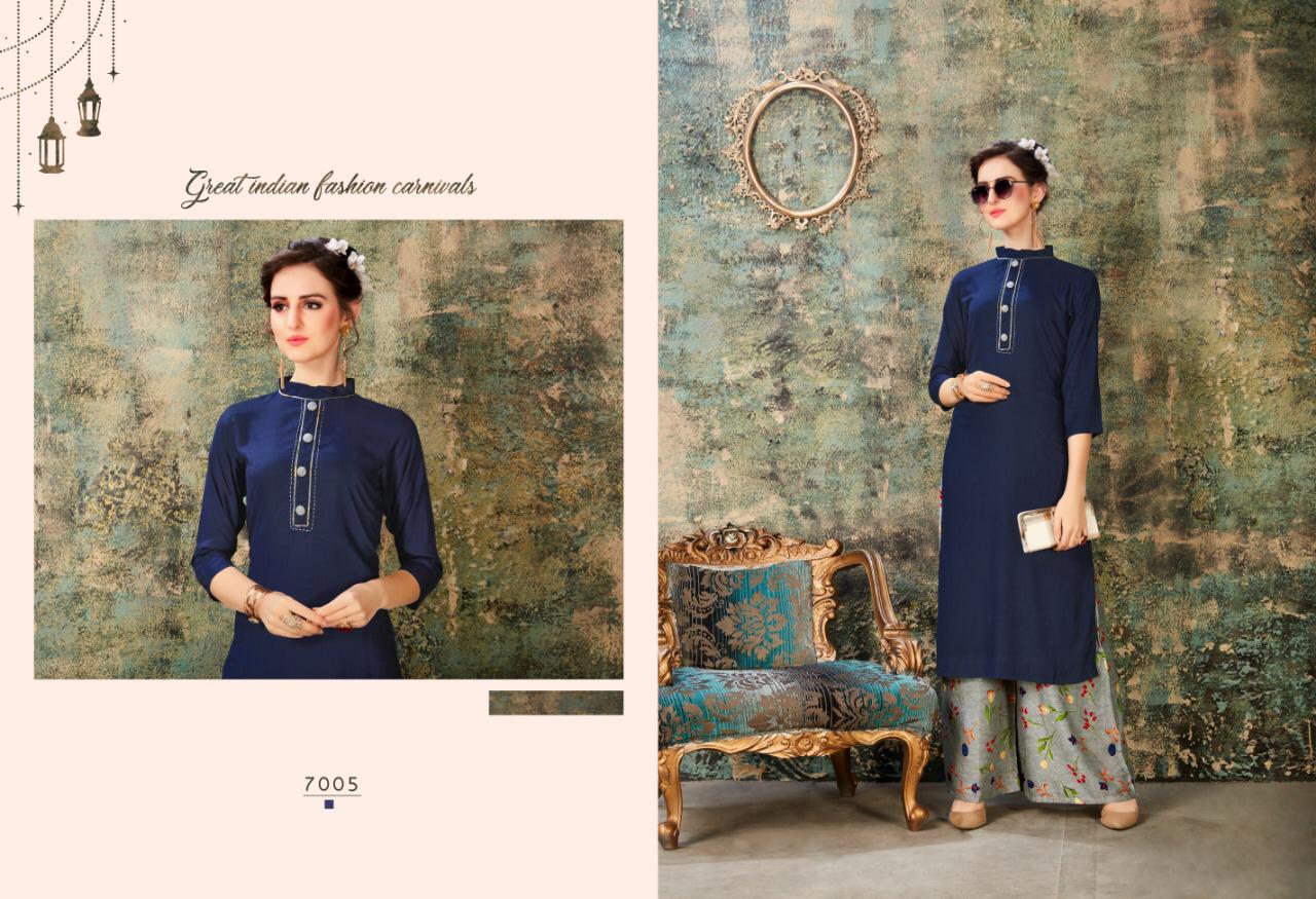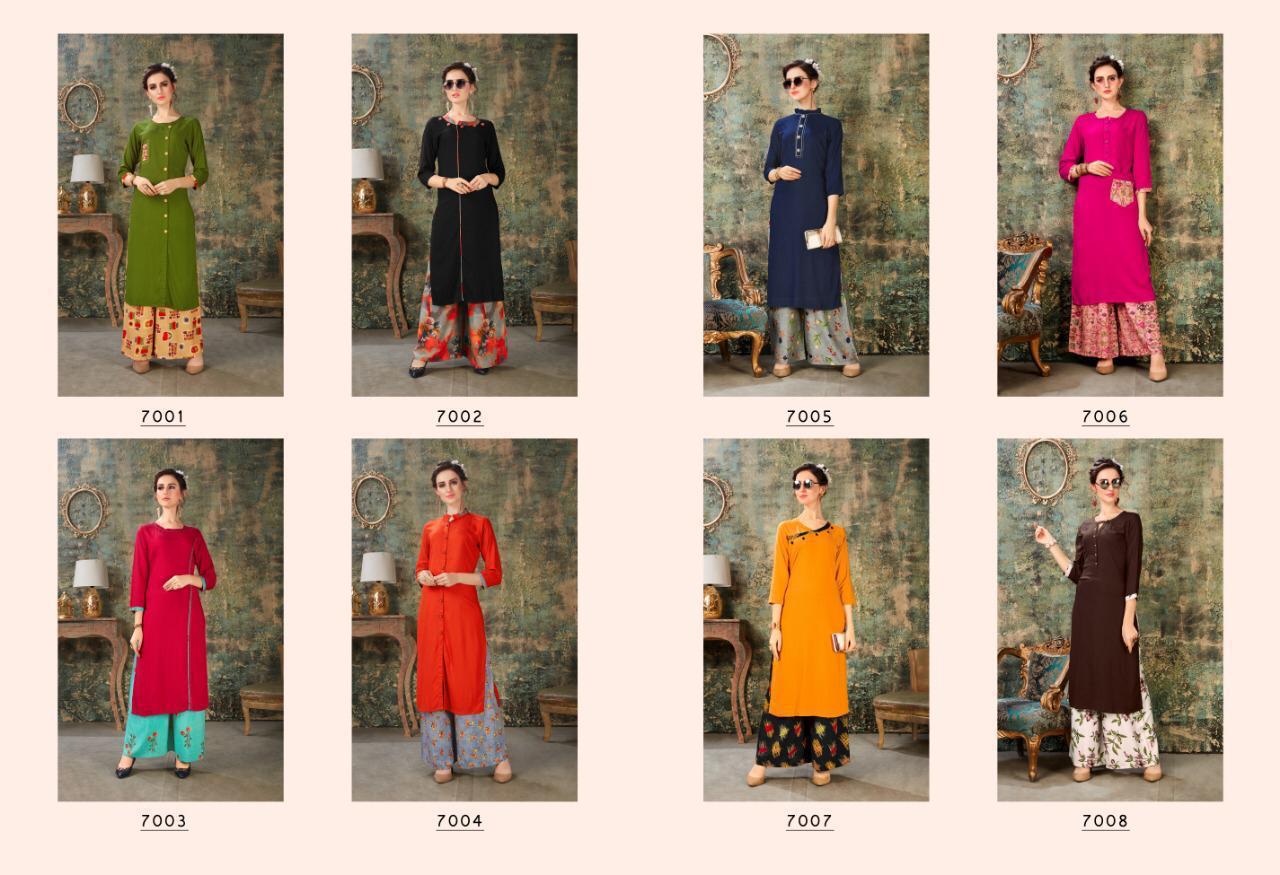 Buy Online Baleno Vol 7 By Sweety Fashion Reyon Slub Kurtis With Plazzo Wholesale Supplier India 8 Pcs of Full Catalogue at Wholesale Price. Looking for Baleno Vol 7 By Sweety Fashion Reyon Slub Kurtis With Plazzo Wholesale Supplier India Full Catalouge at Best Price? Buy Now Baleno Vol 7 By Sweety Fashion Reyon Slub Kurtis With Plazzo Wholesale Supplier India at Wholesale Rate of Rs 5400 with Total 8 Pcs from authroized dealer and supplier of Brand. Cost of Each piece is just only Rs 675 which is very low and affordable price to resale the product in your retail store ,This is Surat based Wholesale Supplier & Dealer of Brand. Click on Brand name to Know more about Brand's products.Call or Whatsapp on 9898838984 for booking or enquiry