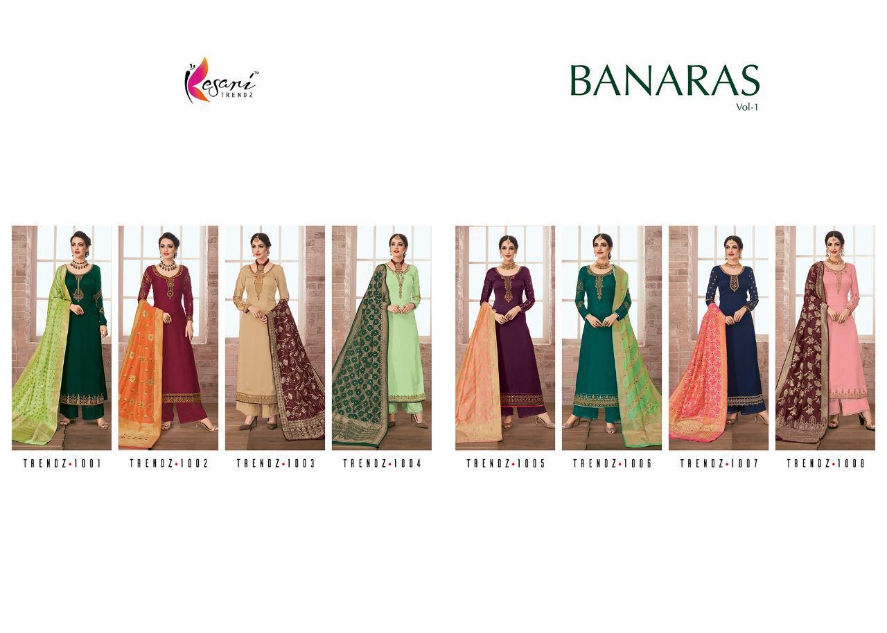 Buy Online Banaras Vol 1 By Kesari Trendz Series 1001 To 1008 Satin Georgette Embroidered Designer Party Wear Suits Wholesale Supplier Gujarat 8 Pcs of Full Catalogue at Wholesale Price. Looking for Banaras Vol 1 By Kesari Trendz Series 1001 To 1008 Satin Georgette Embroidered Designer Party Wear Suits Wholesale Supplier Gujarat Full Catalouge at Best Price? Buy Now Banaras Vol 1 By Kesari Trendz Series 1001 To 1008 Satin Georgette Embroidered Designer Party Wear Suits Wholesale Supplier Gujarat at Wholesale Rate of Rs 10392 with Total 8 Pcs from authroized dealer and supplier of KESARI TRENDZ Brand. Cost of Each piece is just only Rs 1299 which is very low and affordable price to resale the product in your retail store ,This is Surat based Wholesale Supplier & Dealer of KESARI TRENDZ Brand. Click on Brand name to Know more about KESARI TRENDZ Brand's products.Call or Whatsapp on 9898838984 for booking or enquiry