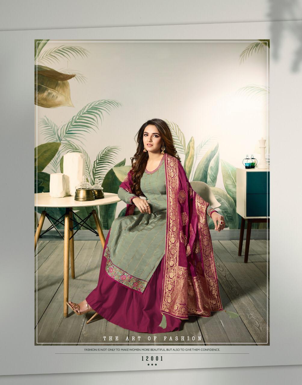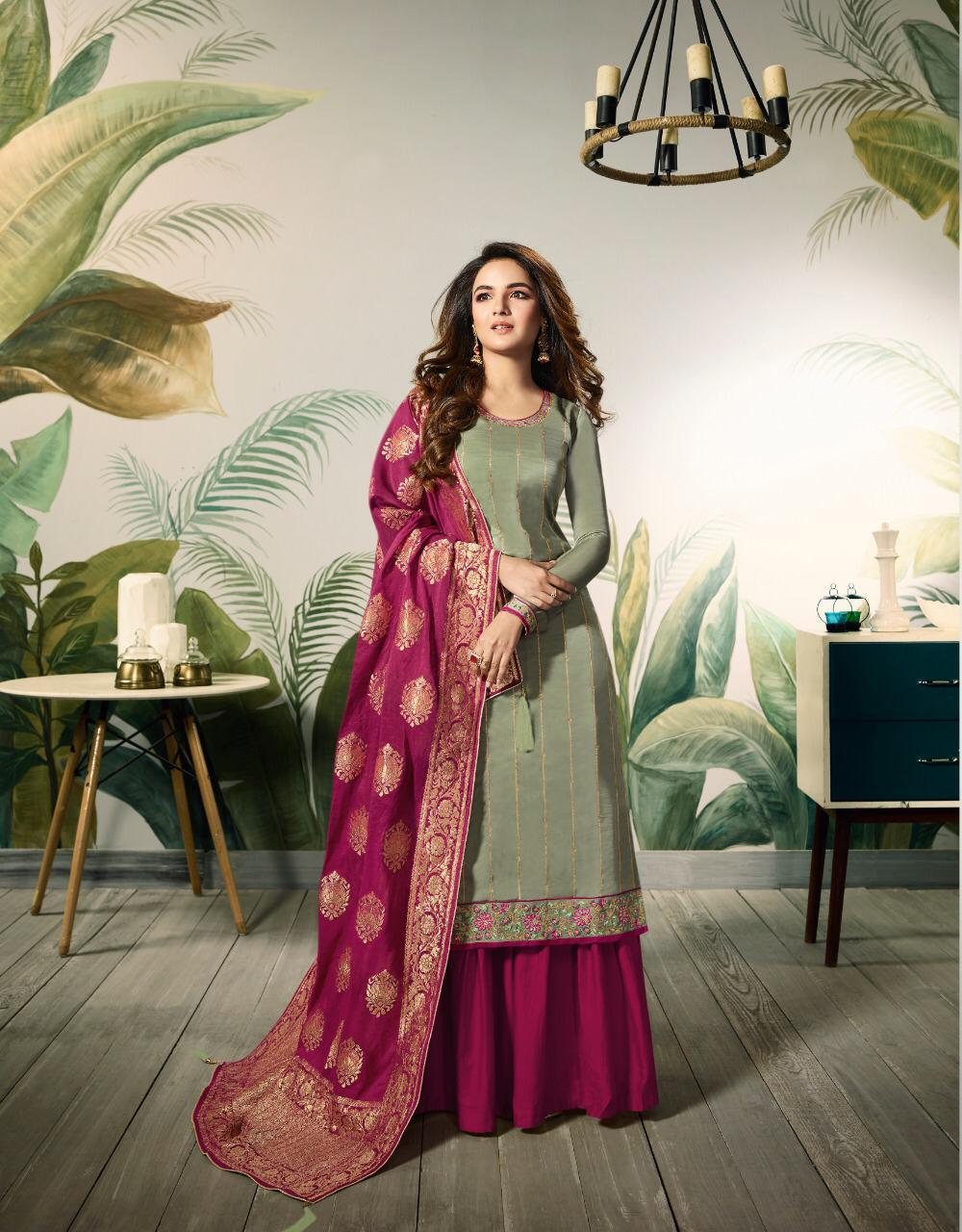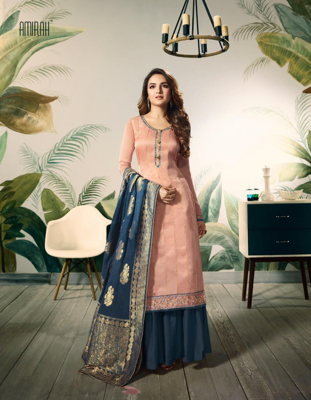 *"AMIRAH"*_ BRAND CREATED BY YOU..... *Â?*FANTASTIC "**collection of 6 designs....... *..." *?AMIRAH ?*"... BANARAS VOL. 2 ?Quality Fabrics... *No.1* Fabric Details:- ? Top : - MODAL SATIN SILK WITH EMBRODERY WORK & SAROSKI DAIMOND NACK.& HAND WORK. INAR :- Hevy Dull santoon Bottom :- Havy Dull Santoon ??Dup.:- BANARSI JACUQUARD ? *Rate: 1495/- *ADD:- G.s.t* Set To Set. Delivery 7 days Have a look to this awesome catalogue & book your orders...and thanks for ur support hope u always with us. Always with you...... Team:- Amirah....,,,, |