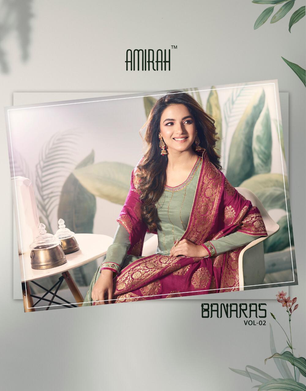 Buy Online Banaras Vol 2 By Amirah Satin Silk Embroidered Designer Party Wear Suits Wholesale Supplier Gujarat 6 Pcs of Full Catalogue at Wholesale Price. Looking for Banaras Vol 2 By Amirah Satin Silk Embroidered Designer Party Wear Suits Wholesale Supplier Gujarat Full Catalouge at Best Price? Buy Now Banaras Vol 2 By Amirah Satin Silk Embroidered Designer Party Wear Suits Wholesale Supplier Gujarat at Wholesale Rate of Rs 8970 with Total 6 Pcs from authroized dealer and supplier of Amirah Brand. Cost of Each piece is just only Rs 1495 which is very low and affordable price to resale the product in your retail store ,This is Surat based Wholesale Supplier & Dealer of Amirah Brand. Click on Brand name to Know more about Amirah Brand's products.Call or Whatsapp on 9898838984 for booking or enquiry