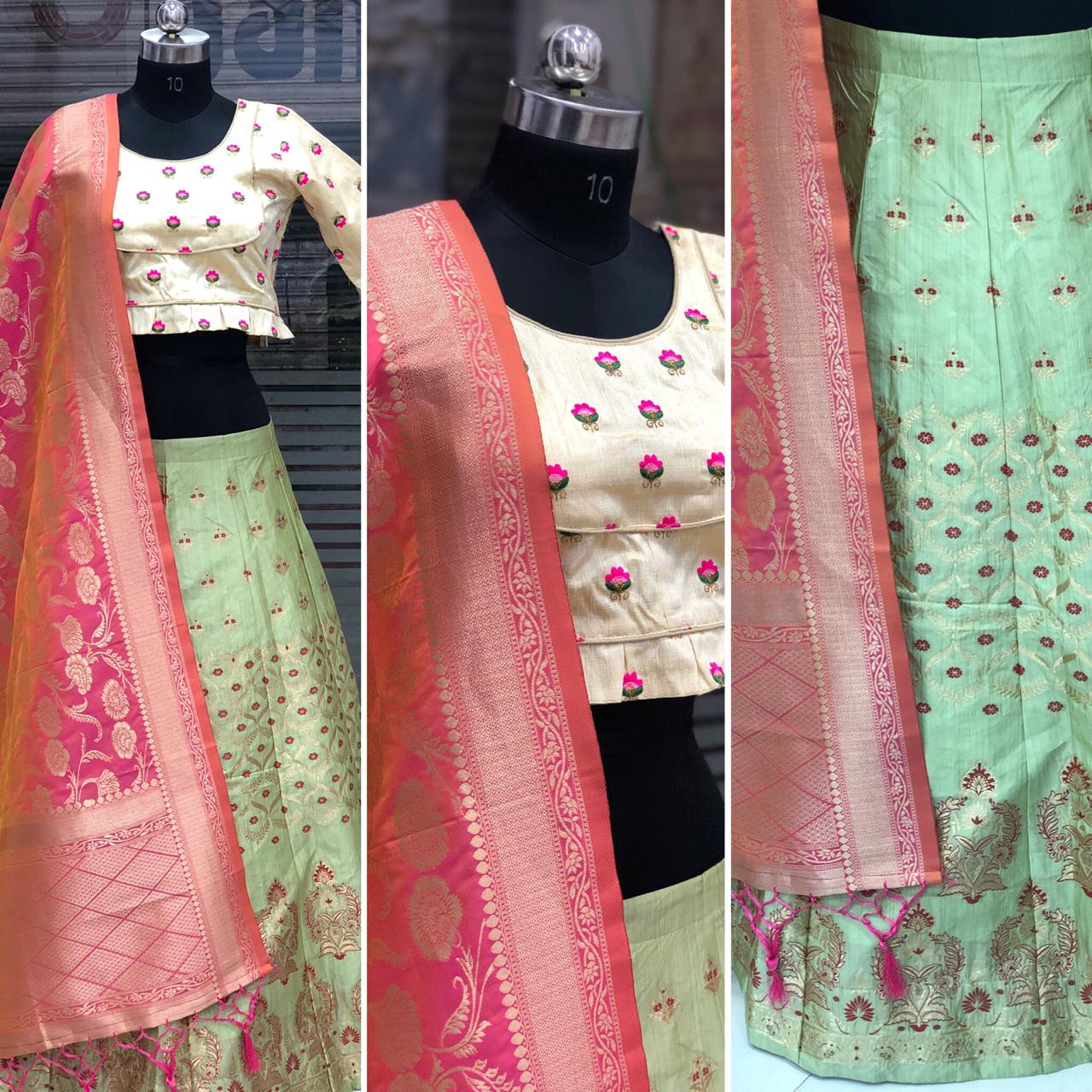 Buy Online Banarasi Silk Heavy Jacquard Work Lehnga Choli Wholesale Supplier Surat 3 Pcs of Full Catalogue at Wholesale Price. Looking for Banarasi Silk Heavy Jacquard Work Lehnga Choli Wholesale Supplier Surat Full Catalouge at Best Price? Buy Now Banarasi Silk Heavy Jacquard Work Lehnga Choli Wholesale Supplier Surat at Wholesale Rate of Rs 6150 with Total 3 Pcs from authroized dealer and supplier of Brand. Cost of Each piece is just only Rs 2050 which is very low and affordable price to resale the product in your retail store ,This is Surat based Wholesale Supplier & Dealer of Brand. Click on Brand name to Know more about Brand's products.Call or Whatsapp on 9898838984 for booking or enquiry