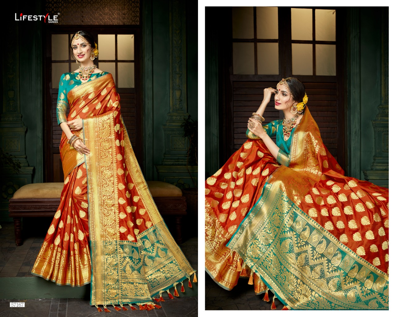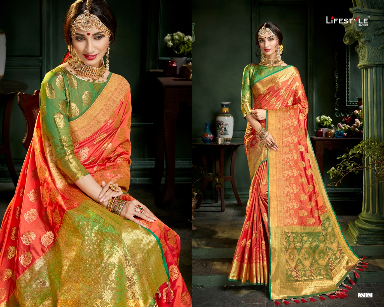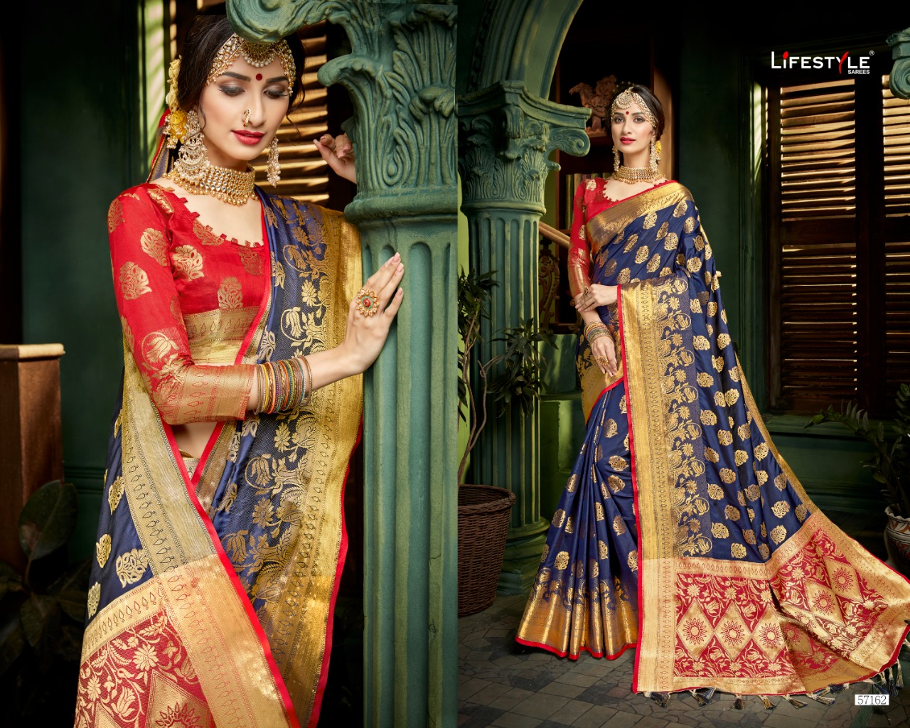 Buy Online Banarasi Silk Vol 2 By Lifestyle 57161 Series Designer Weaving Range Saree Catlog Wholesale Dealer And Supplier Surat 12 Pcs of Full Catalogue at Wholesale Price. Looking for Banarasi Silk Vol 2 By Lifestyle 57161 Series Designer Weaving Range Saree Catlog Wholesale Dealer And Supplier Surat Full Catalouge at Best Price? Buy Now Banarasi Silk Vol 2 By Lifestyle 57161 Series Designer Weaving Range Saree Catlog Wholesale Dealer And Supplier Surat at Wholesale Rate of Rs 12600 with Total 12 Pcs from authroized dealer and supplier of LIFESTYLE Brand. Cost of Each piece is just only Rs 1050 which is very low and affordable price to resale the product in your retail store ,This is Surat based Wholesale Supplier & Dealer of LIFESTYLE Brand. Click on Brand name to Know more about LIFESTYLE Brand's products.Call or Whatsapp on 9898838984 for booking or enquiry