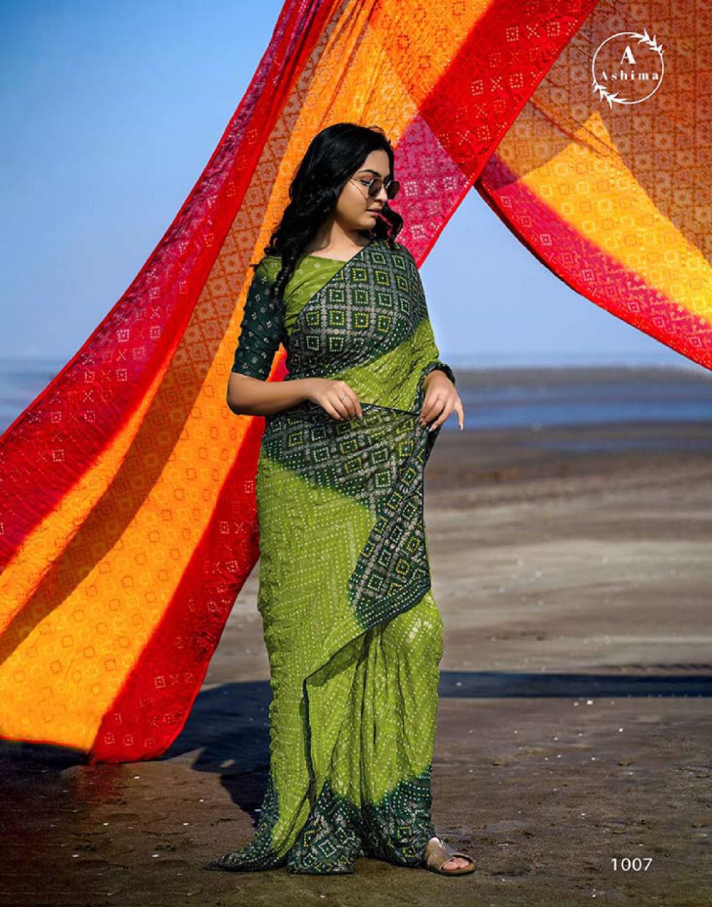 Buy Online Bandhani Foily By Ashima Saree Single And Set Stockiest And Supplier From Surat 8 Pcs of Full Catalogue at Wholesale Price. Looking for Bandhani Foily By Ashima Saree Single And Set Stockiest And Supplier From Surat Full Catalouge at Best Price? Buy Now Bandhani Foily By Ashima Saree Single And Set Stockiest And Supplier From Surat at Wholesale Rate of Rs 5200 with Total 8 Pcs from authroized dealer and supplier of Brand. Cost of Each piece is just only Rs 650 which is very low and affordable price to resale the product in your retail store ,This is Surat based Wholesale Supplier & Dealer of Brand. Click on Brand name to Know more about Brand's products.Call or Whatsapp on 9898838984 for booking or enquiry