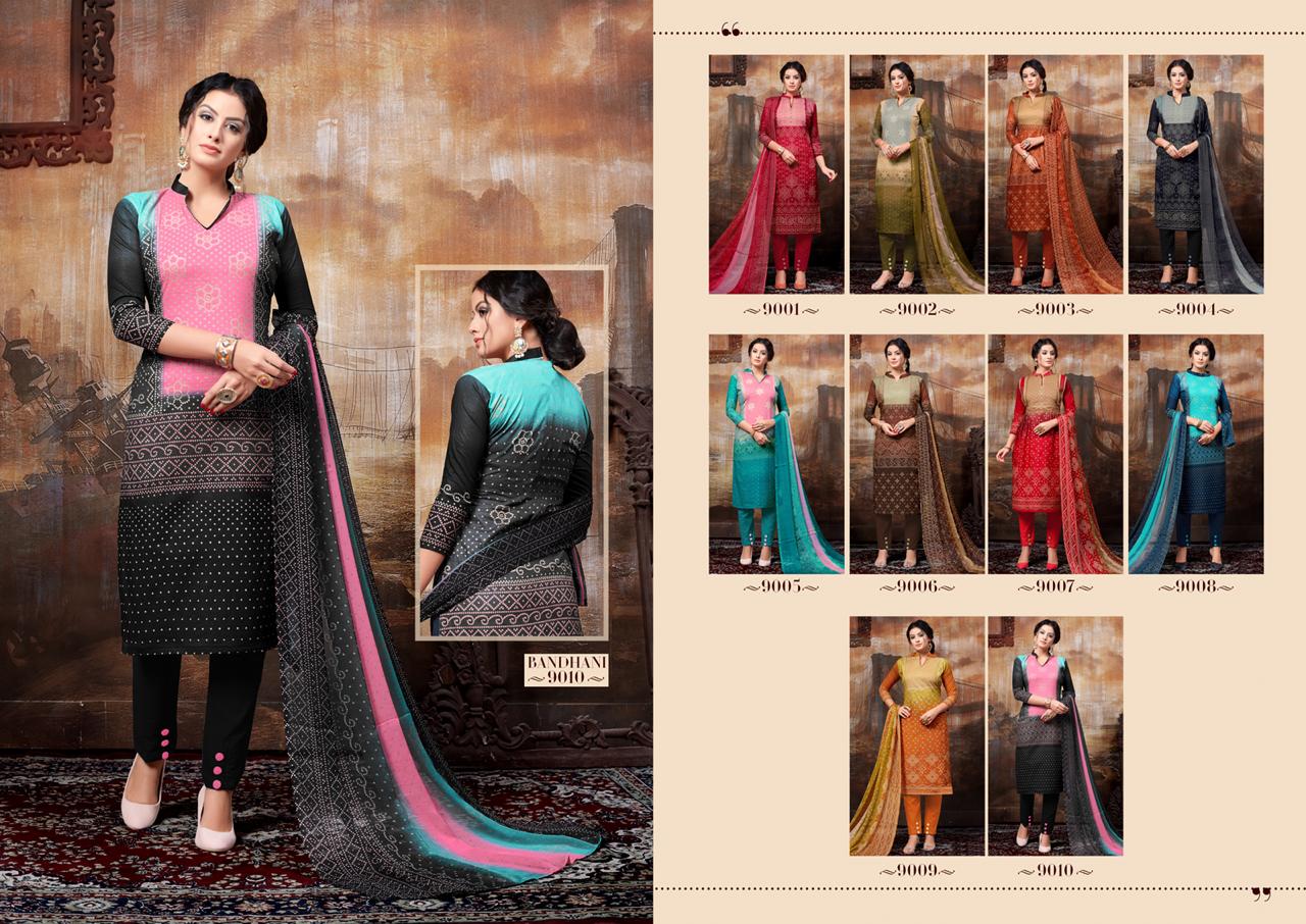 Buy Online Bandhani Vol 9 By Ritu 9001 Series Pyre Cambric Digital Print Salwar Kameez Catlog Wholesaler Surat 10 Pcs of Full Catalogue at Wholesale Price. Looking for Bandhani Vol 9 By Ritu 9001 Series Pyre Cambric Digital Print Salwar Kameez Catlog Wholesaler Surat Full Catalouge at Best Price? Buy Now Bandhani Vol 9 By Ritu 9001 Series Pyre Cambric Digital Print Salwar Kameez Catlog Wholesaler Surat at Wholesale Rate of Rs 4510 with Total 10 Pcs from authroized dealer and supplier of Brand. Cost of Each piece is just only Rs 451 which is very low and affordable price to resale the product in your retail store ,This is Surat based Wholesale Supplier & Dealer of Brand. Click on Brand name to Know more about Brand's products.Call or Whatsapp on 9898838984 for booking or enquiry