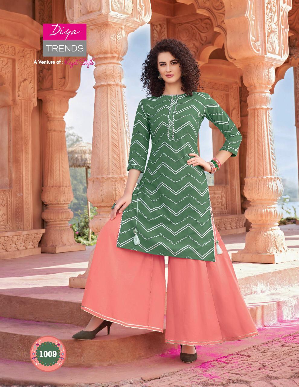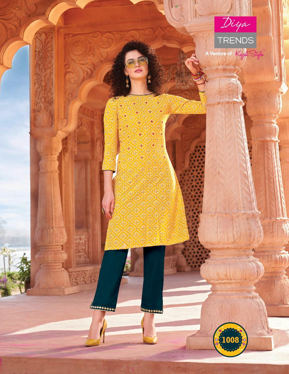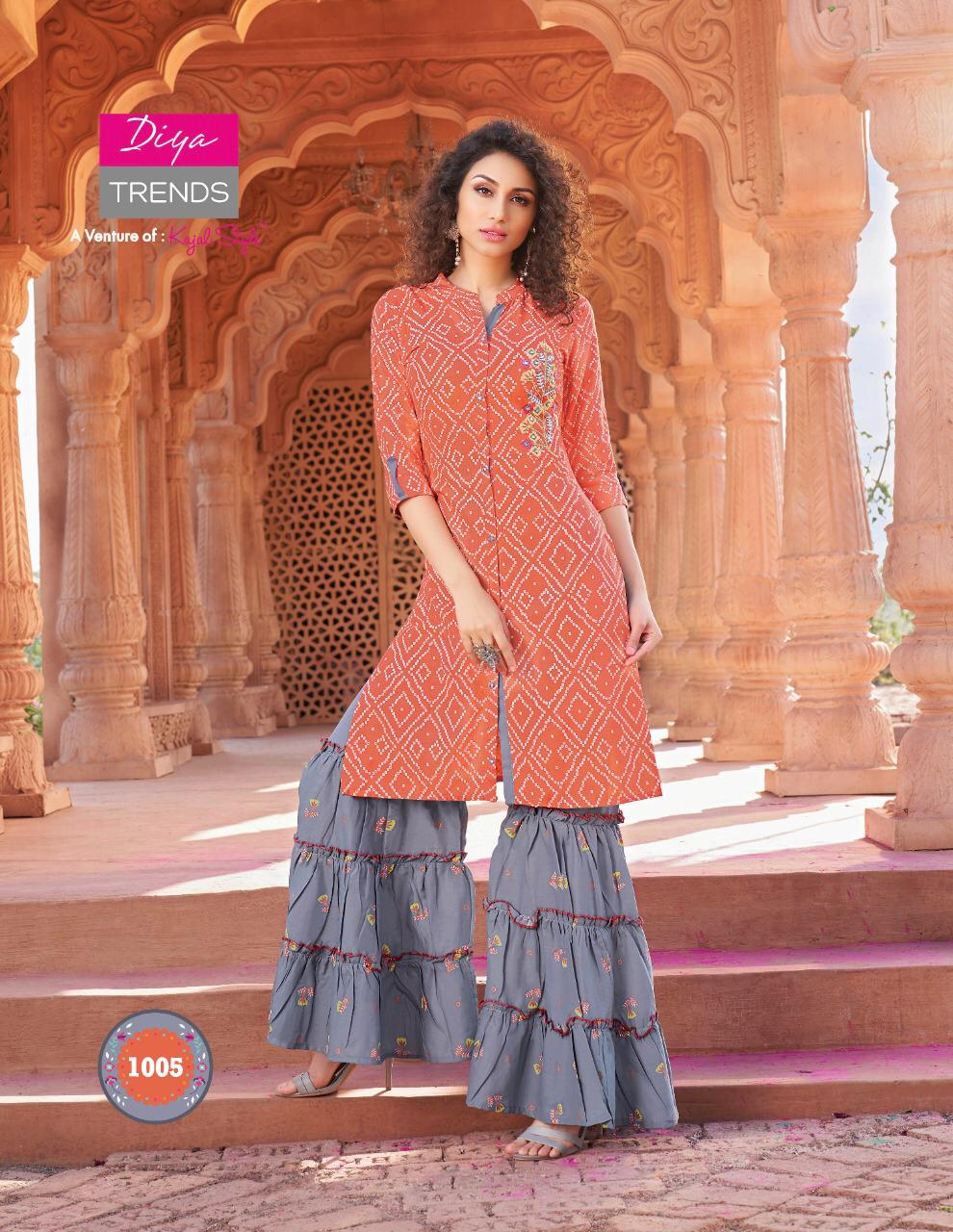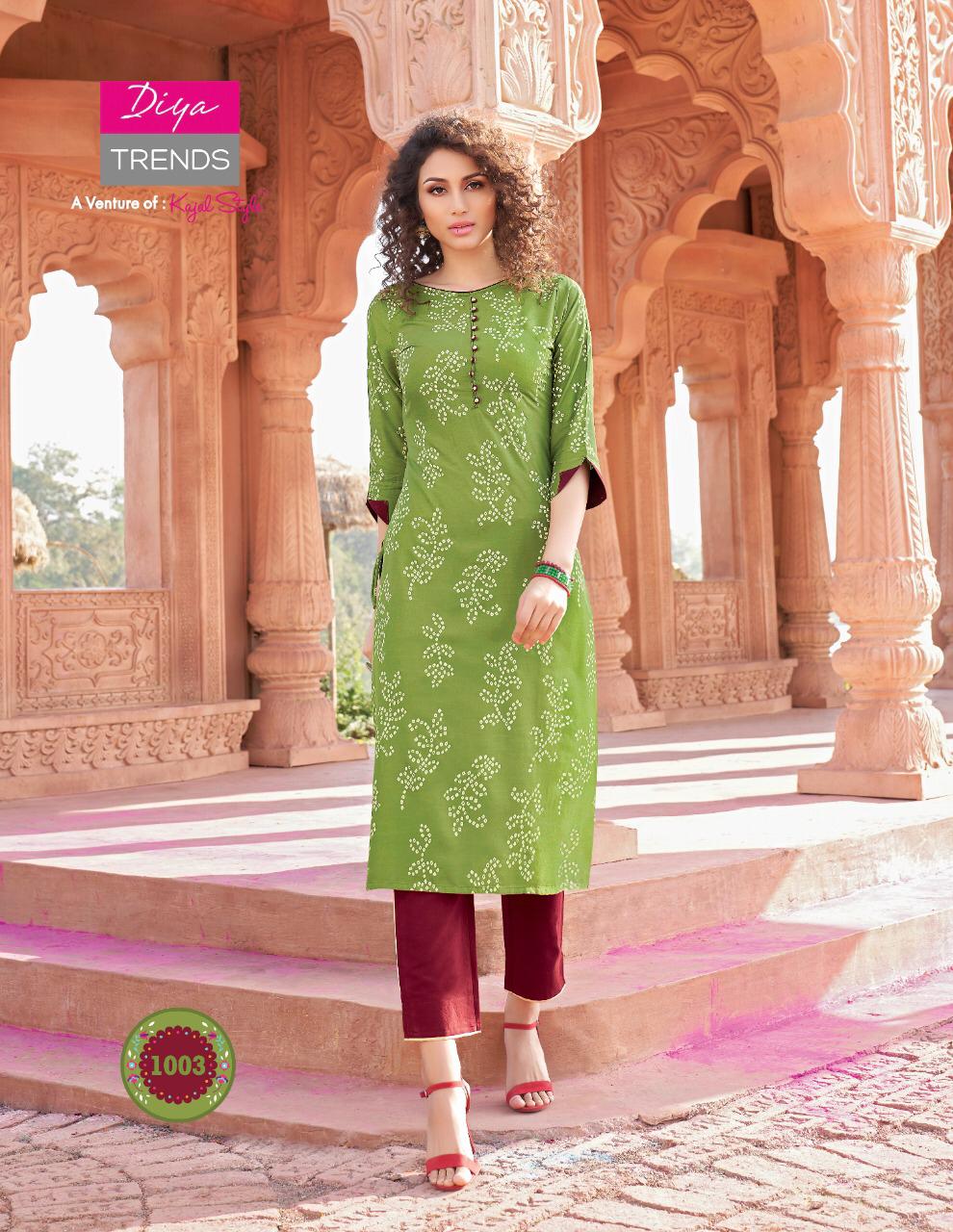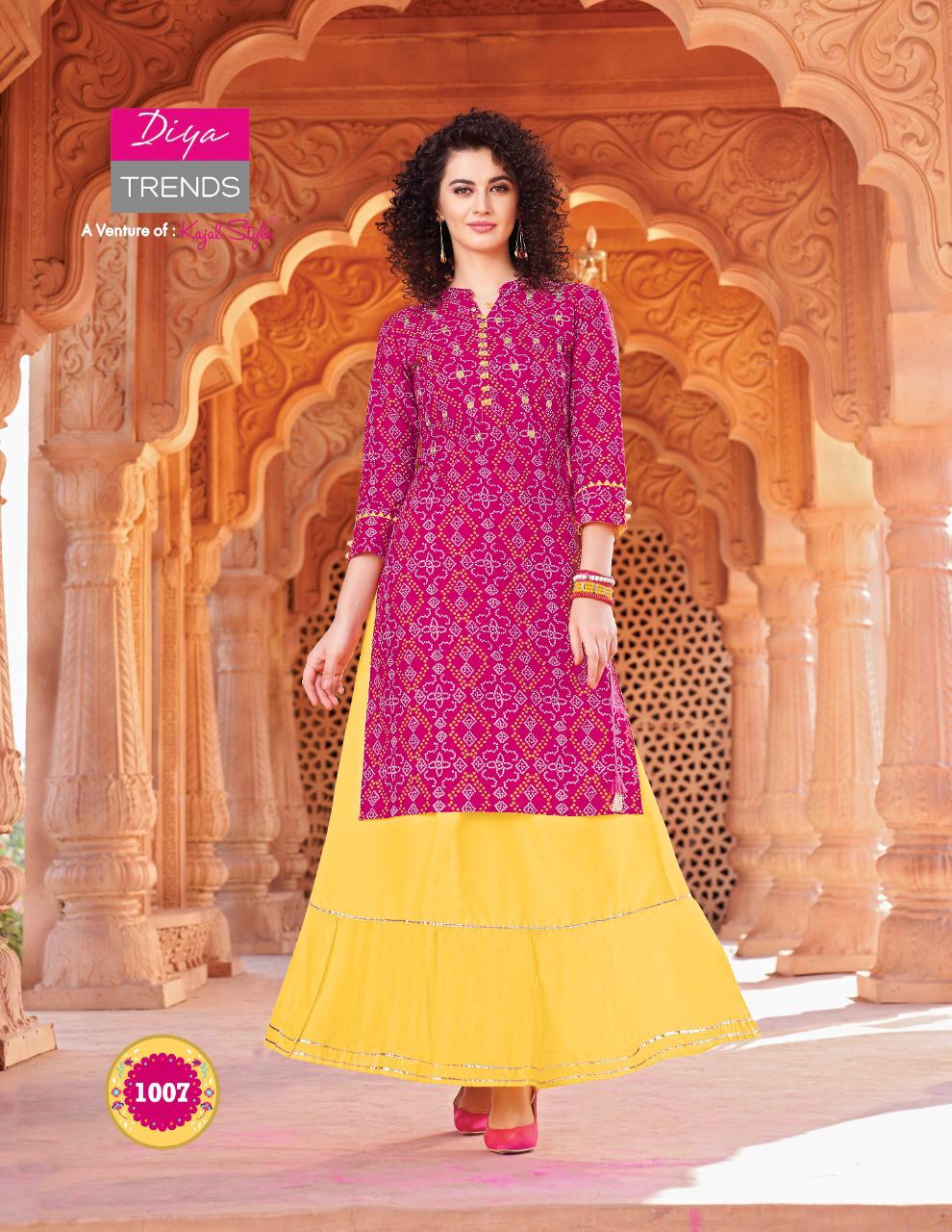 Buy Online Bandhej Vol 1 By Diya Trends Kurtis With Bottom Wholesale Supplier And Dealer Surat 12 Pcs of Full Catalogue at Wholesale Price. Looking for Bandhej Vol 1 By Diya Trends Kurtis With Bottom Wholesale Supplier And Dealer Surat Full Catalouge at Best Price? Buy Now Bandhej Vol 1 By Diya Trends Kurtis With Bottom Wholesale Supplier And Dealer Surat at Wholesale Rate of Rs 7260 with Total 12 Pcs from authroized dealer and supplier of Brand. Cost of Each piece is just only Rs 605 which is very low and affordable price to resale the product in your retail store ,This is Surat based Wholesale Supplier & Dealer of Brand. Click on Brand name to Know more about Brand's products.Call or Whatsapp on 9898838984 for booking or enquiry