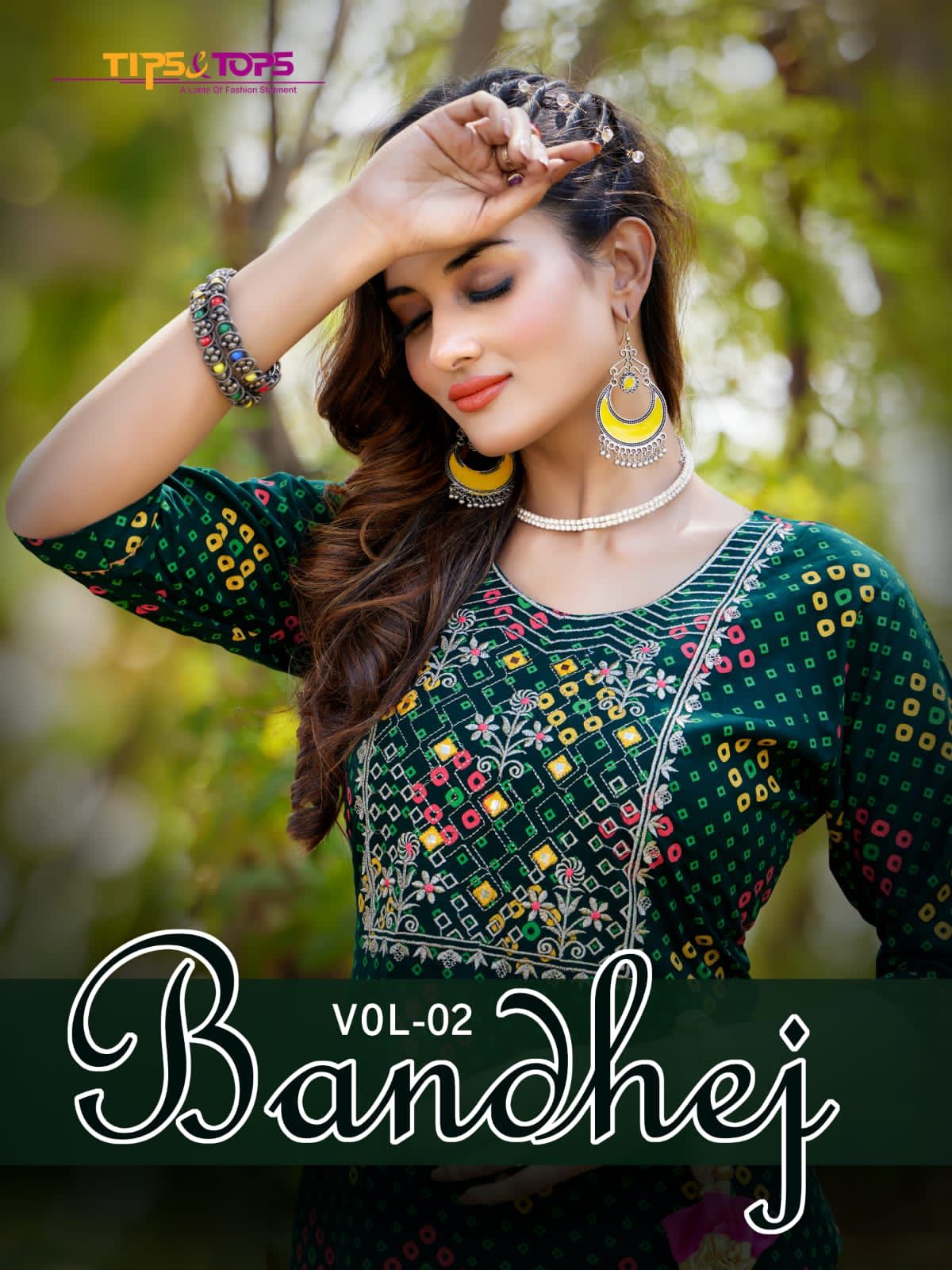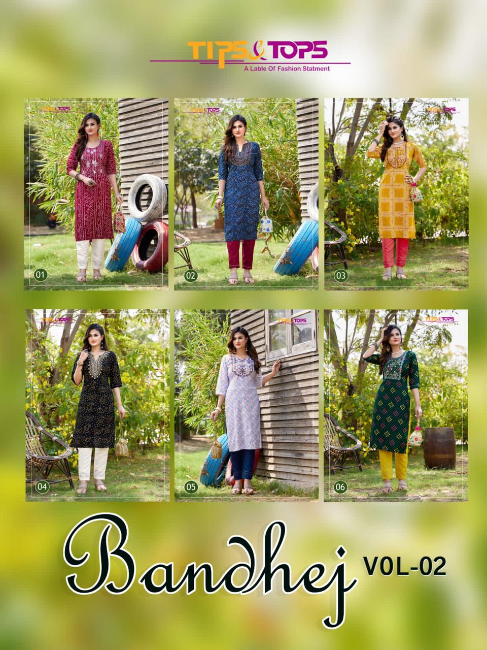 Bandhej Vol 2 By Tips Tops Kurti With Pant Wholesaler Supplier From Surat
