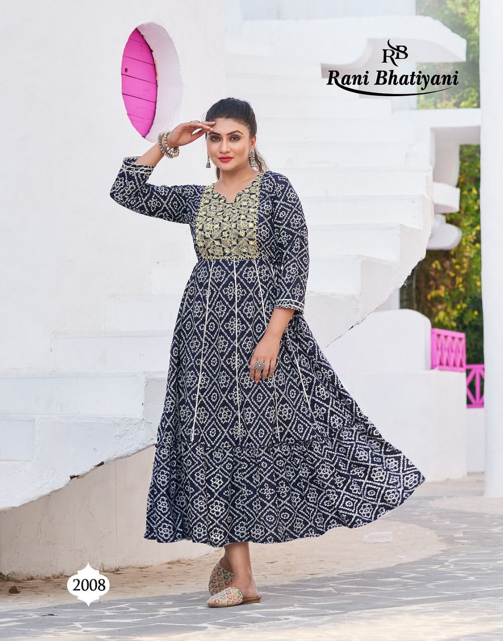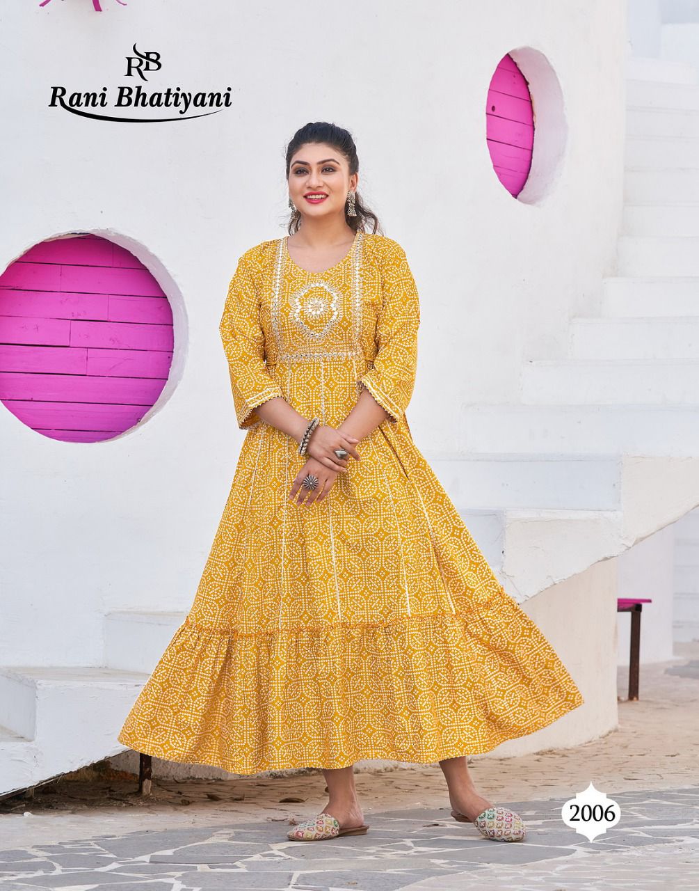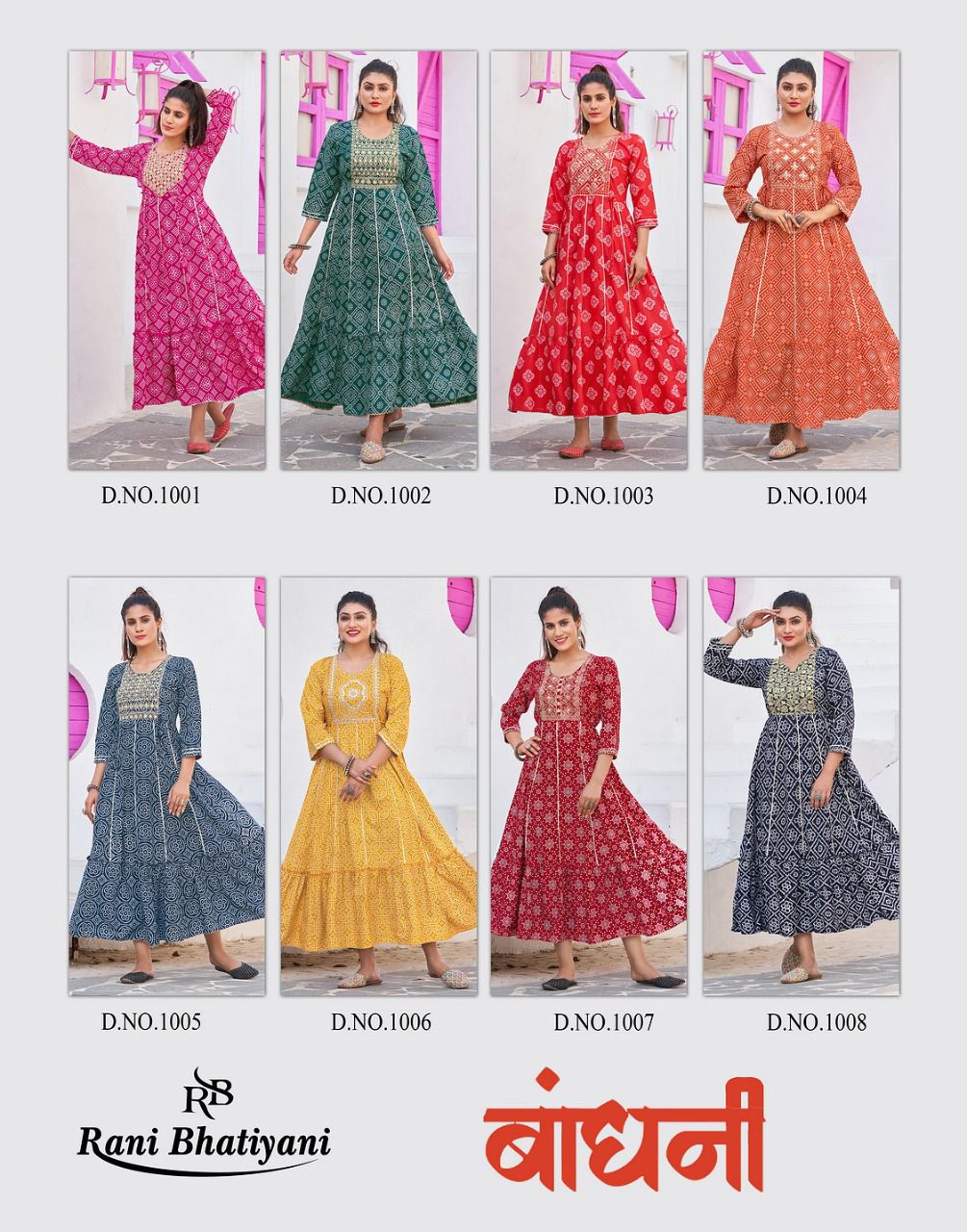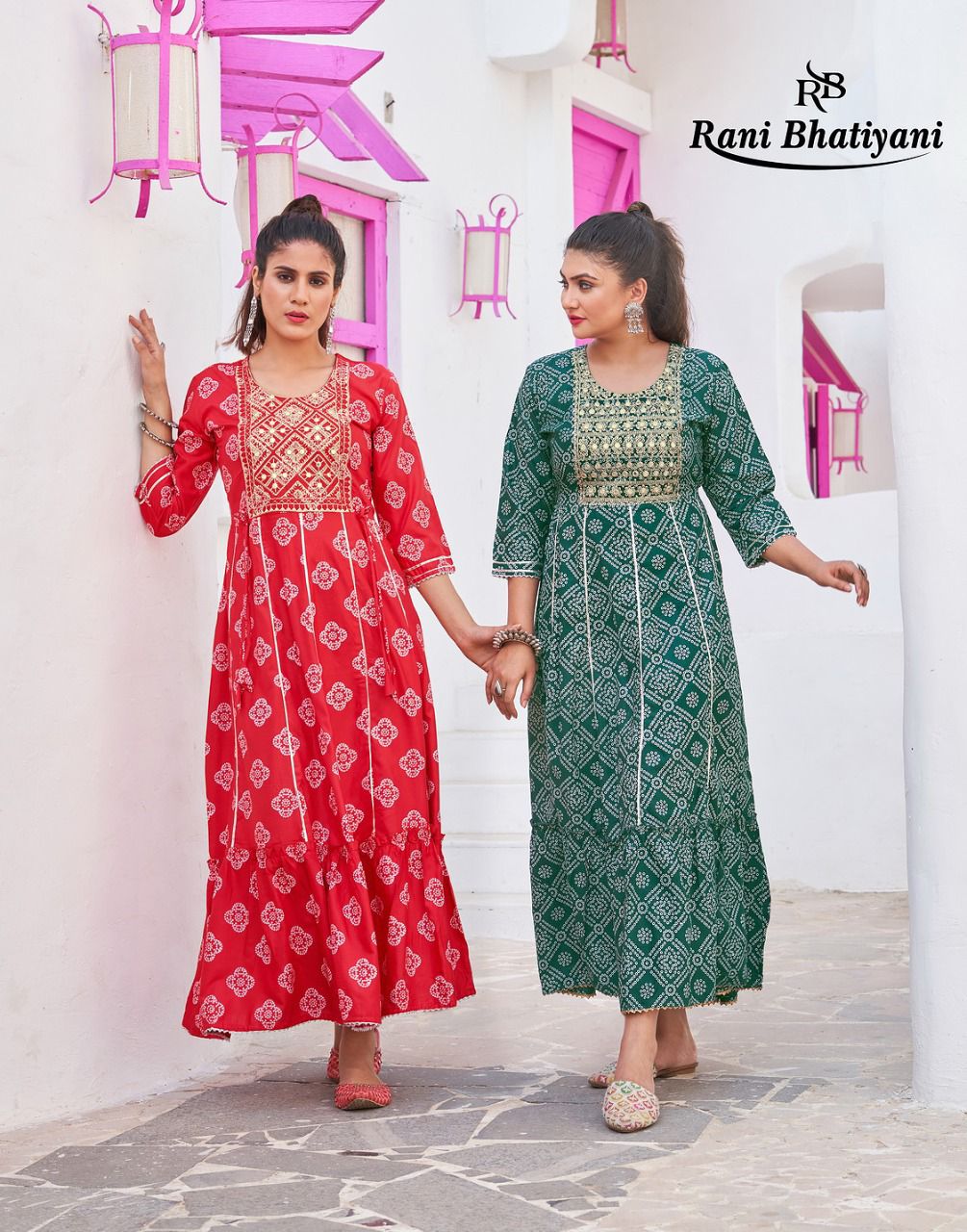 Buy Online Bandhni By Rani Bhatiyani Designer Gown Collection Dealer And Exporter Surat Gujarat 8 Pcs of Full Catalogue at Wholesale Price. Looking for Bandhni By Rani Bhatiyani Designer Gown Collection Dealer And Exporter Surat Gujarat Full Catalouge at Best Price? Buy Now Bandhni By Rani Bhatiyani Designer Gown Collection Dealer And Exporter Surat Gujarat at Wholesale Rate of Rs 4792 with Total 8 Pcs from authroized dealer and supplier of BRAND'S Brand. Cost of Each piece is just only Rs 599 which is very low and affordable price to resale the product in your retail store ,This is Surat based Wholesale Supplier & Dealer of BRAND'S Brand. Click on Brand name to Know more about BRAND'S Brand's products.Call or Whatsapp on 9898838984 for booking or enquiry