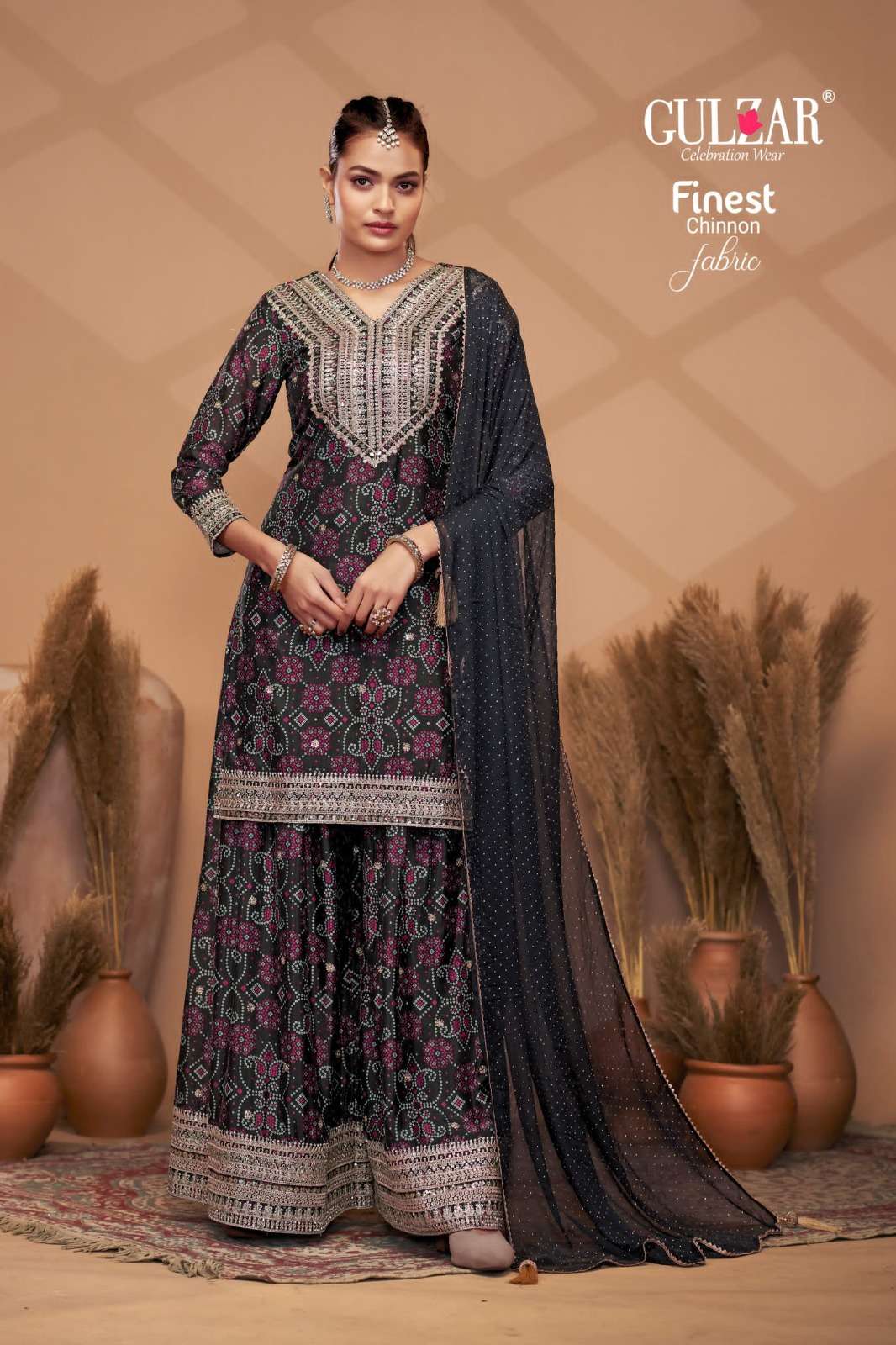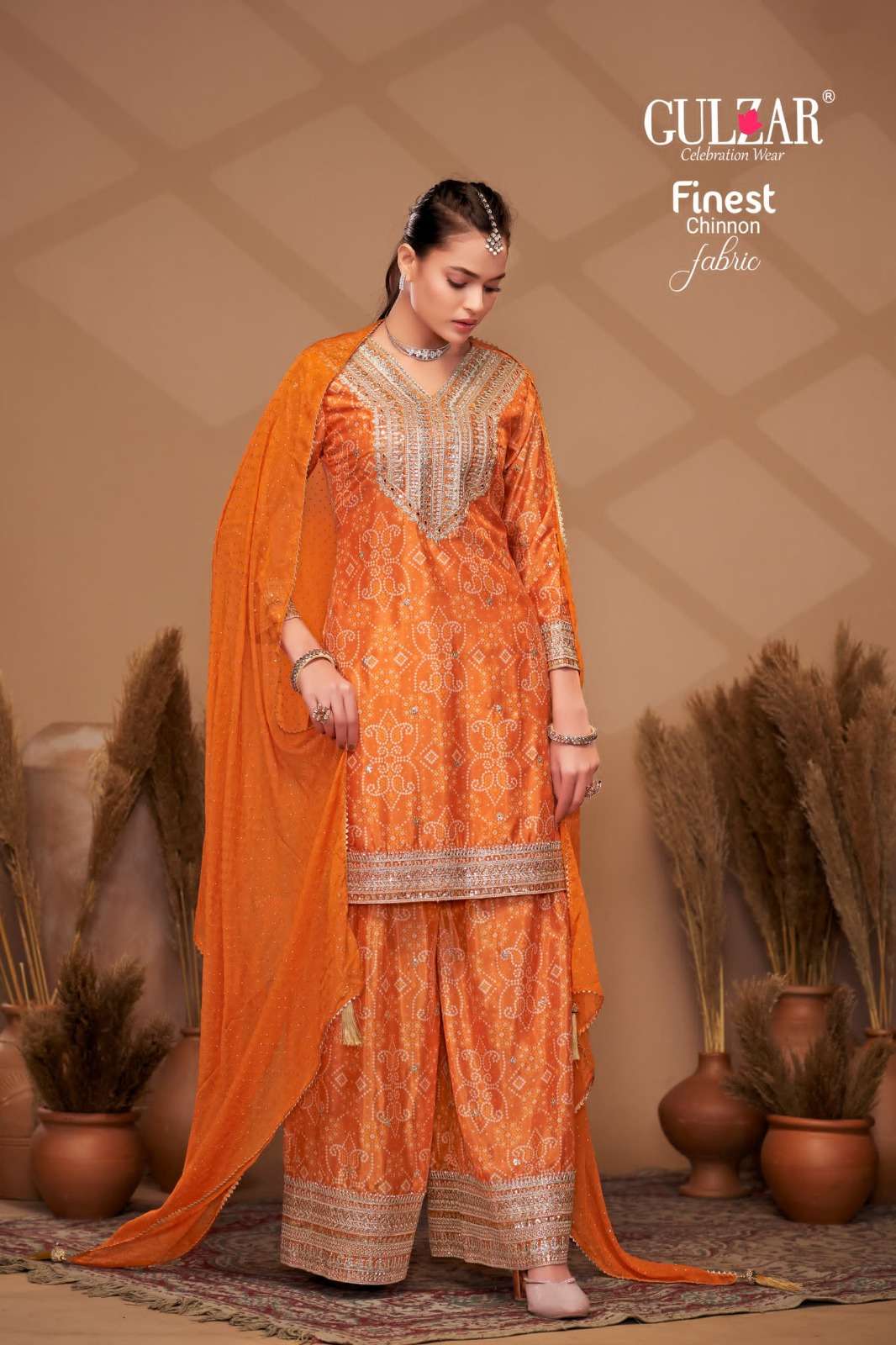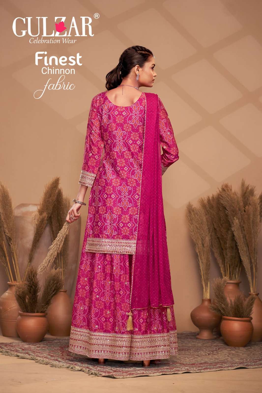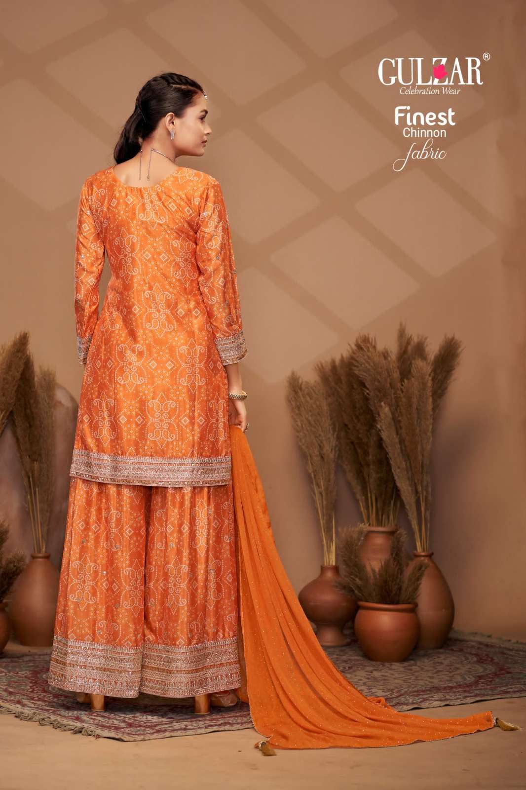BRAND NAME – GULZAR CATALOG NAME – BANDHREJ D.NO. 2151 TO 2154 4 COLOUR PER SET FREESIZE Readymade Inside Marging Upto 48 inch size Fabric Top : Premium & Finest Chinnon with dabka dori embroidery handmade mirror work embroidery Dupatta : Pure Viscose Chiffon with allover swroski and fourside Gotapati Border Pant :Premium and Finest Chinnon Digital Printed Sharara with handwork WORK : Dabka Dori and Sequince Work with handmade mirror work embroidery and digital print RATE : 2395/- PER PCS GST EXTRA SINGLE AVAILABLE BOOK YOUR ORDER NOW |