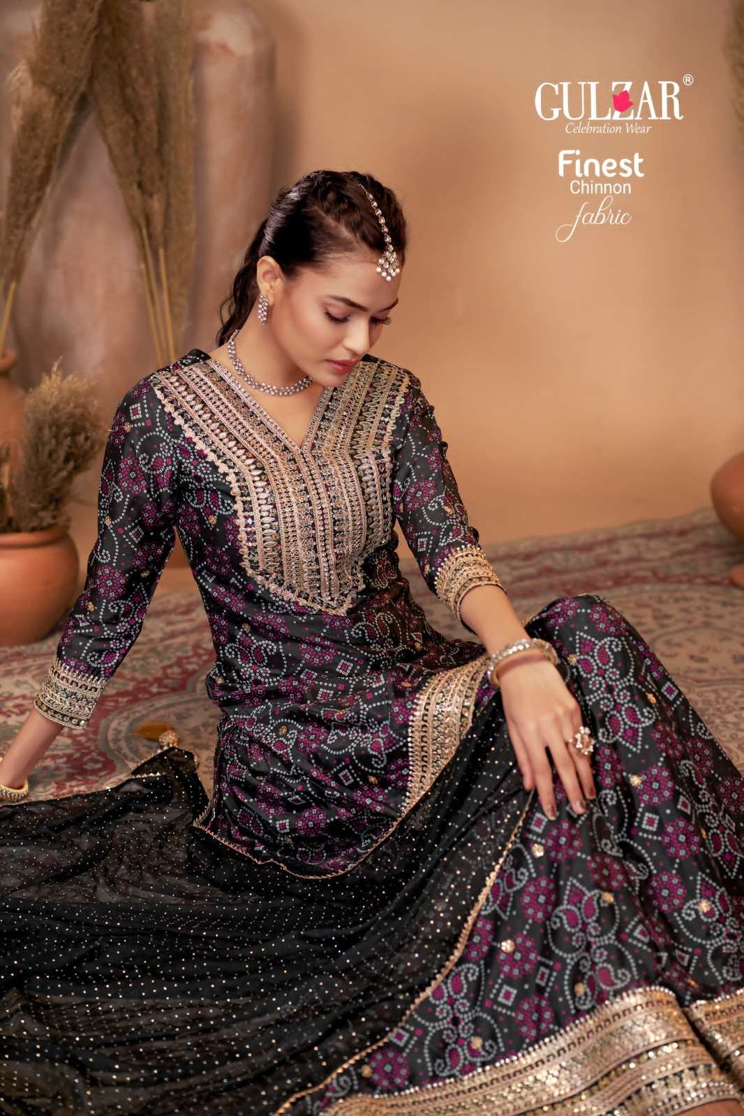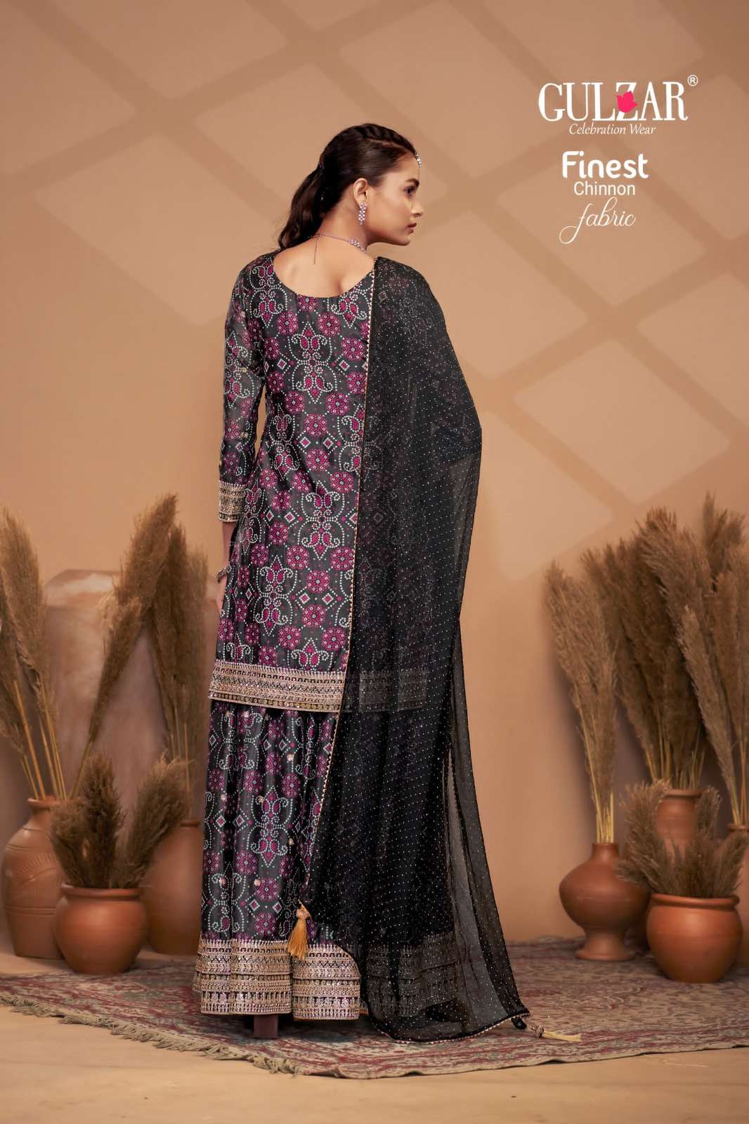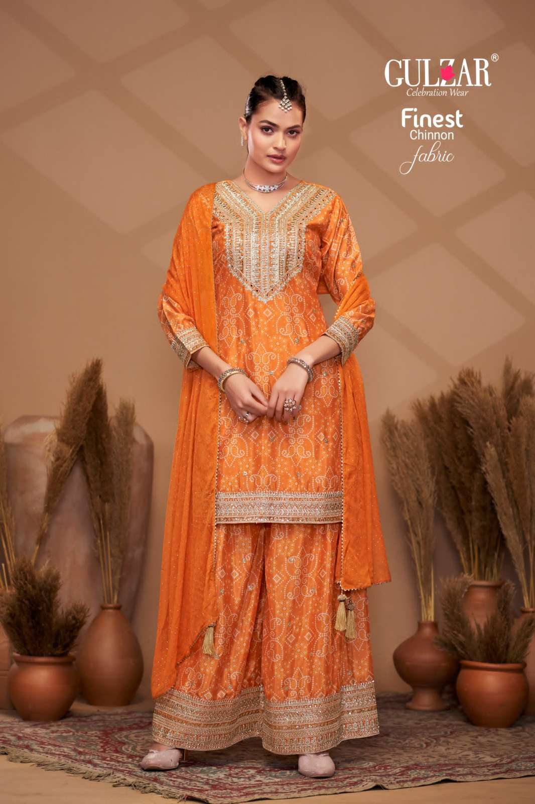 BRAND NAME – GULZAR CATALOG NAME – BANDHREJ D.NO. 2151 TO 2154 4 COLOUR PER SET FREESIZE Readymade Inside Marging Upto 48 inch size Fabric Top : Premium & Finest Chinnon with dabka dori embroidery handmade mirror work embroidery Dupatta : Pure Viscose Chiffon with allover swroski and fourside Gotapati Border Pant :Premium and Finest Chinnon Digital Printed Sharara with handwork WORK : Dabka Dori and Sequince Work with handmade mirror work embroidery and digital print RATE : 2395/- PER PCS GST EXTRA SINGLE AVAILABLE BOOK YOUR ORDER NOW |