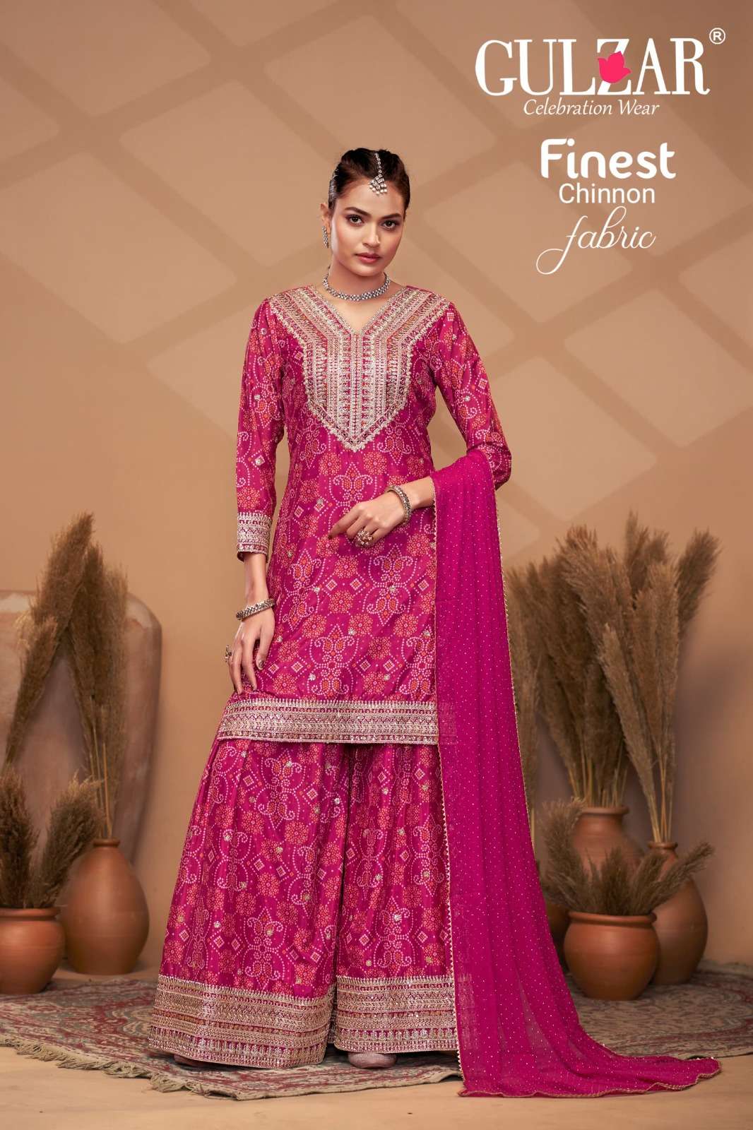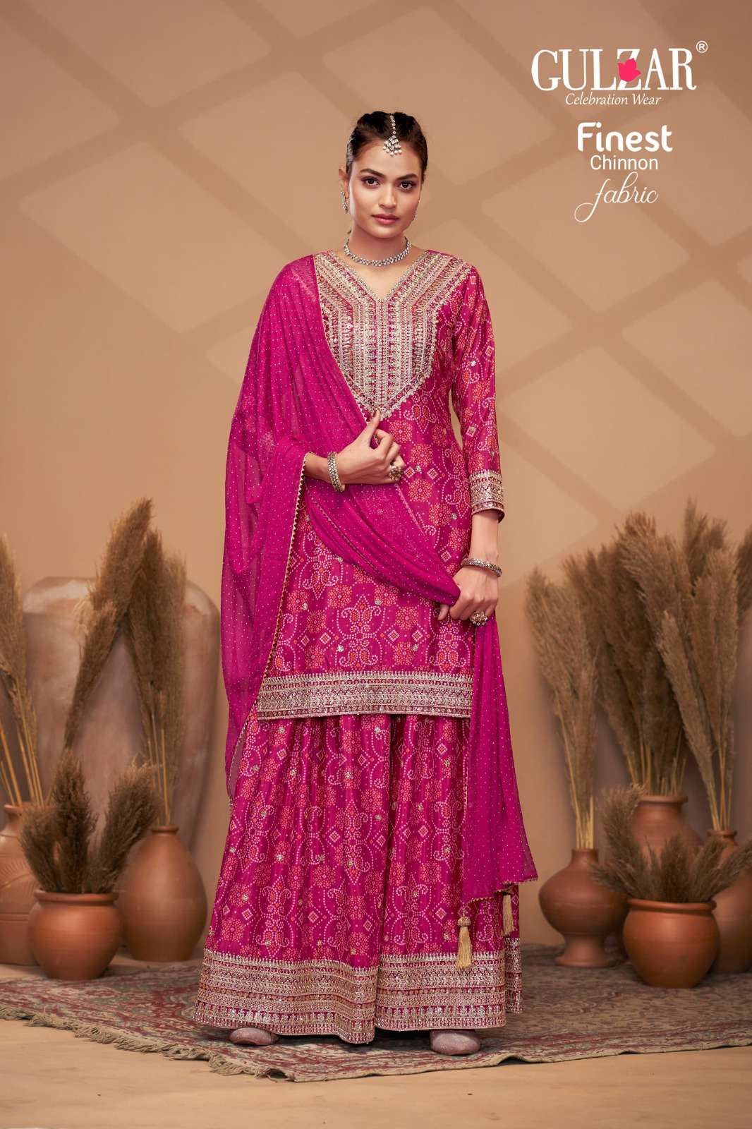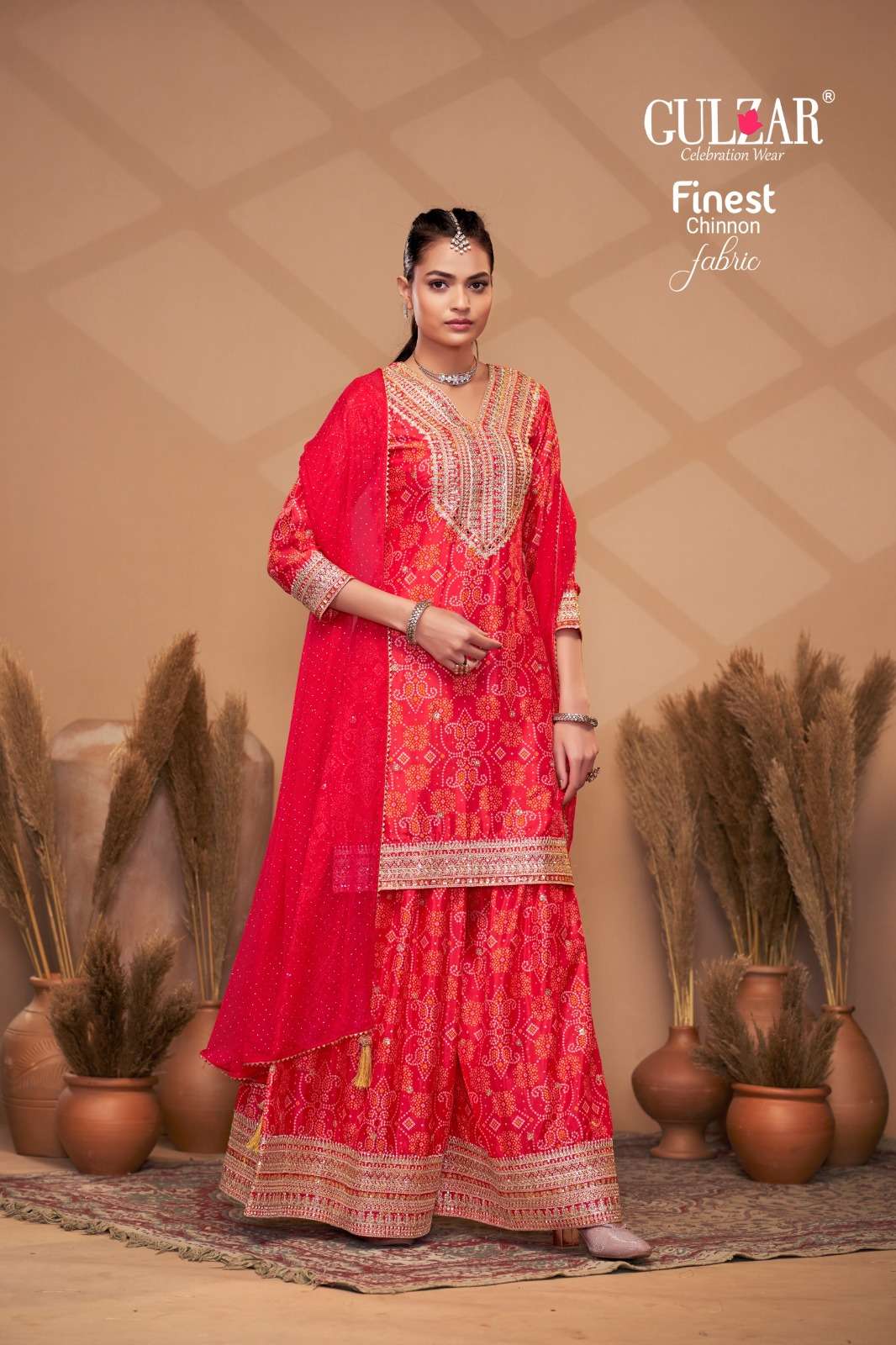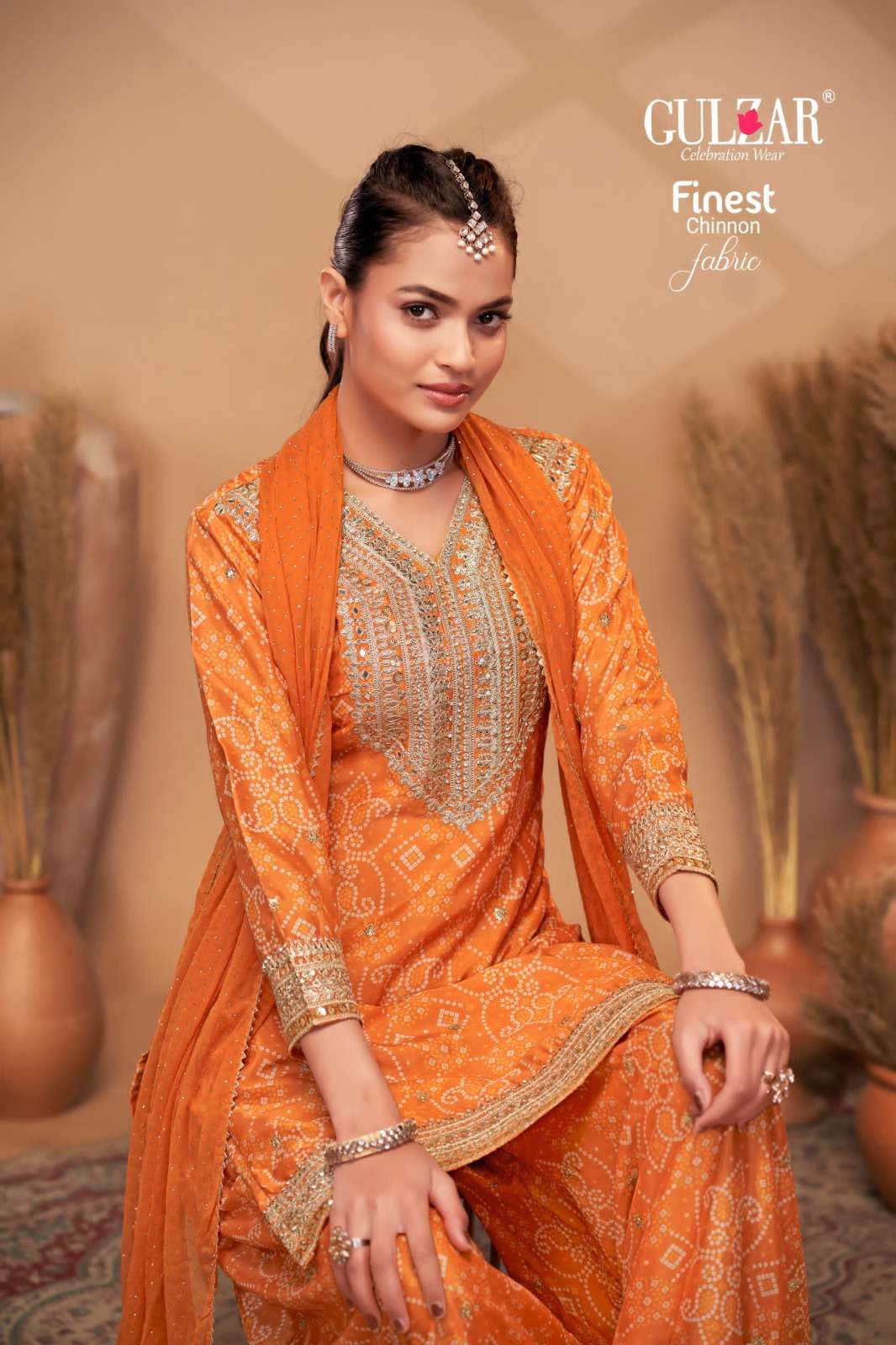 BRAND NAME – GULZAR CATALOG NAME – BANDHREJ D.NO. 2151 TO 2154 4 COLOUR PER SET FREESIZE Readymade Inside Marging Upto 48 inch size Fabric Top : Premium & Finest Chinnon with dabka dori embroidery handmade mirror work embroidery Dupatta : Pure Viscose Chiffon with allover swroski and fourside Gotapati Border Pant :Premium and Finest Chinnon Digital Printed Sharara with handwork WORK : Dabka Dori and Sequince Work with handmade mirror work embroidery and digital print RATE : 2395/- PER PCS GST EXTRA SINGLE AVAILABLE BOOK YOUR ORDER NOW |
