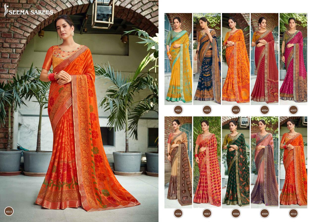 Buy Online Bandish Bandits By Seema Sarees Manufacturer Traders Surat 10 Pcs of Full Catalogue at Wholesale Price. Looking for Bandish Bandits By Seema Sarees Manufacturer Traders Surat Full Catalouge at Best Price? Buy Now Bandish Bandits By Seema Sarees Manufacturer Traders Surat at Wholesale Rate of Rs 7350 with Total 10 Pcs from authroized dealer and supplier of Brand. Cost of Each piece is just only Rs 735 which is very low and affordable price to resale the product in your retail store ,This is Surat based Wholesale Supplier & Dealer of Brand. Click on Brand name to Know more about Brand's products.Call or Whatsapp on 9898838984 for booking or enquiry