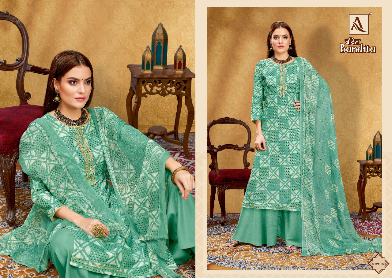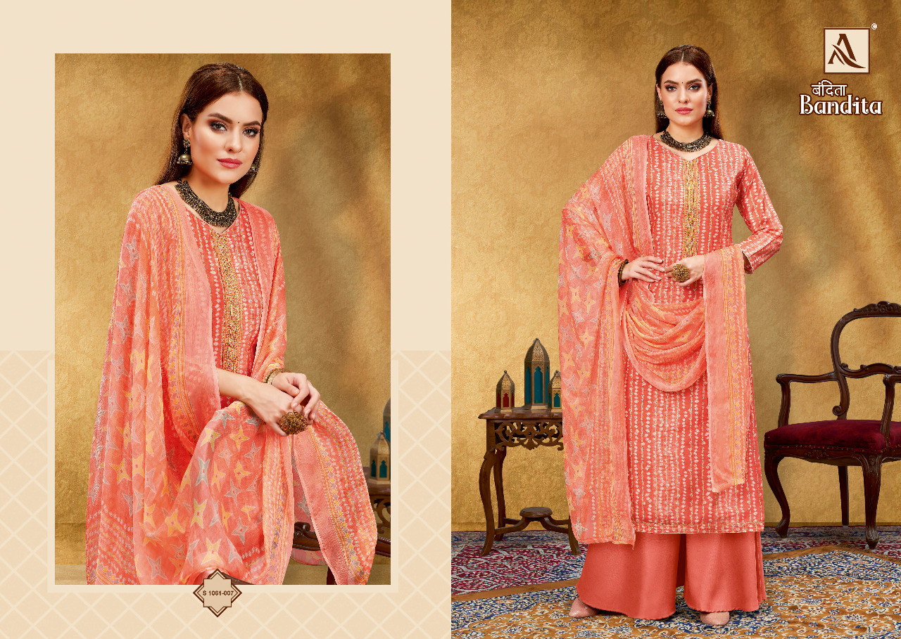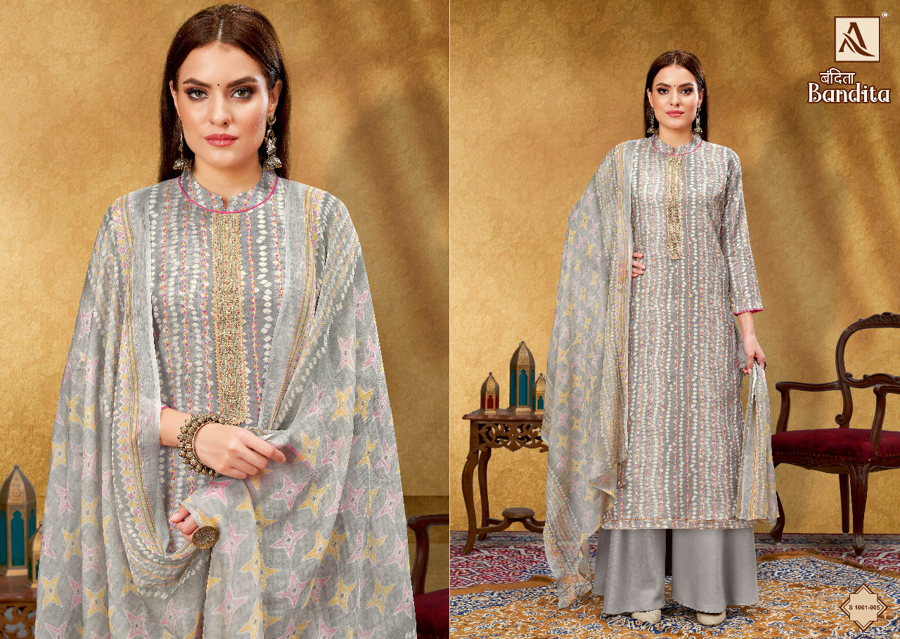 Buy Online Bandita By Alok Suit 8 Pcs of Full Catalogue at Wholesale Price. Looking for Bandita By Alok Suit Full Catalouge at Best Price? Buy Now Bandita By Alok Suit at Wholesale Rate of Rs 6392 with Total 8 Pcs from authroized dealer and supplier of Brand. Cost of Each piece is just only Rs 799 which is very low and affordable price to resale the product in your retail store ,This is Surat based Wholesale Supplier & Dealer of Brand. Click on Brand name to Know more about Brand's products.Call or Whatsapp on 9898838984 for booking or enquiry