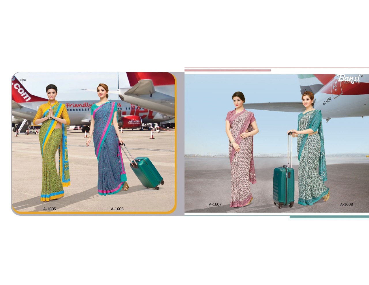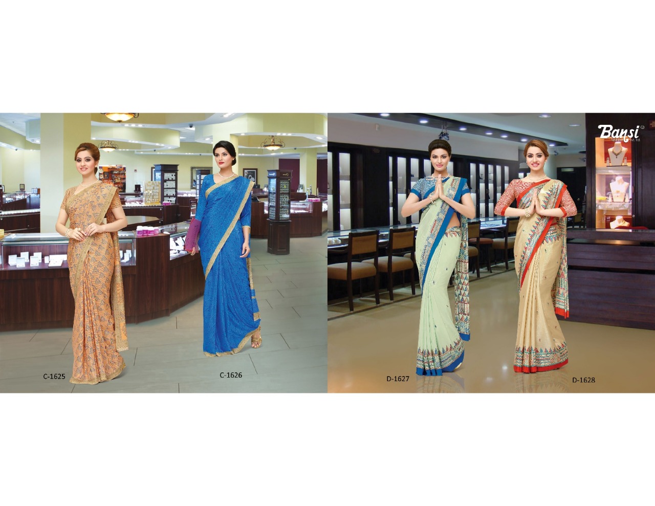 Buy Online Bansi Uniform 1601 Series Fancy Printed Uniform Saree Collection Wholesale Dealer And Supplier Surat 40 Pcs of Full Catalogue at Wholesale Price. Looking for Bansi Uniform 1601 Series Fancy Printed Uniform Saree Collection Wholesale Dealer And Supplier Surat Full Catalouge at Best Price? Buy Now Bansi Uniform 1601 Series Fancy Printed Uniform Saree Collection Wholesale Dealer And Supplier Surat at Wholesale Rate of Rs 14880 with Total 40 Pcs from authroized dealer and supplier of BANSI FASHION PVT LTD Brand. Cost of Each piece is just only Rs 372 which is very low and affordable price to resale the product in your retail store ,This is Surat based Wholesale Supplier & Dealer of BANSI FASHION PVT LTD Brand. Click on Brand name to Know more about BANSI FASHION PVT LTD Brand's products.Call or Whatsapp on 9898838984 for booking or enquiry