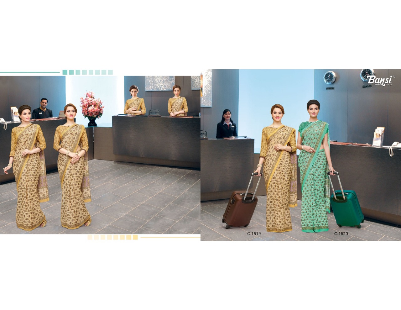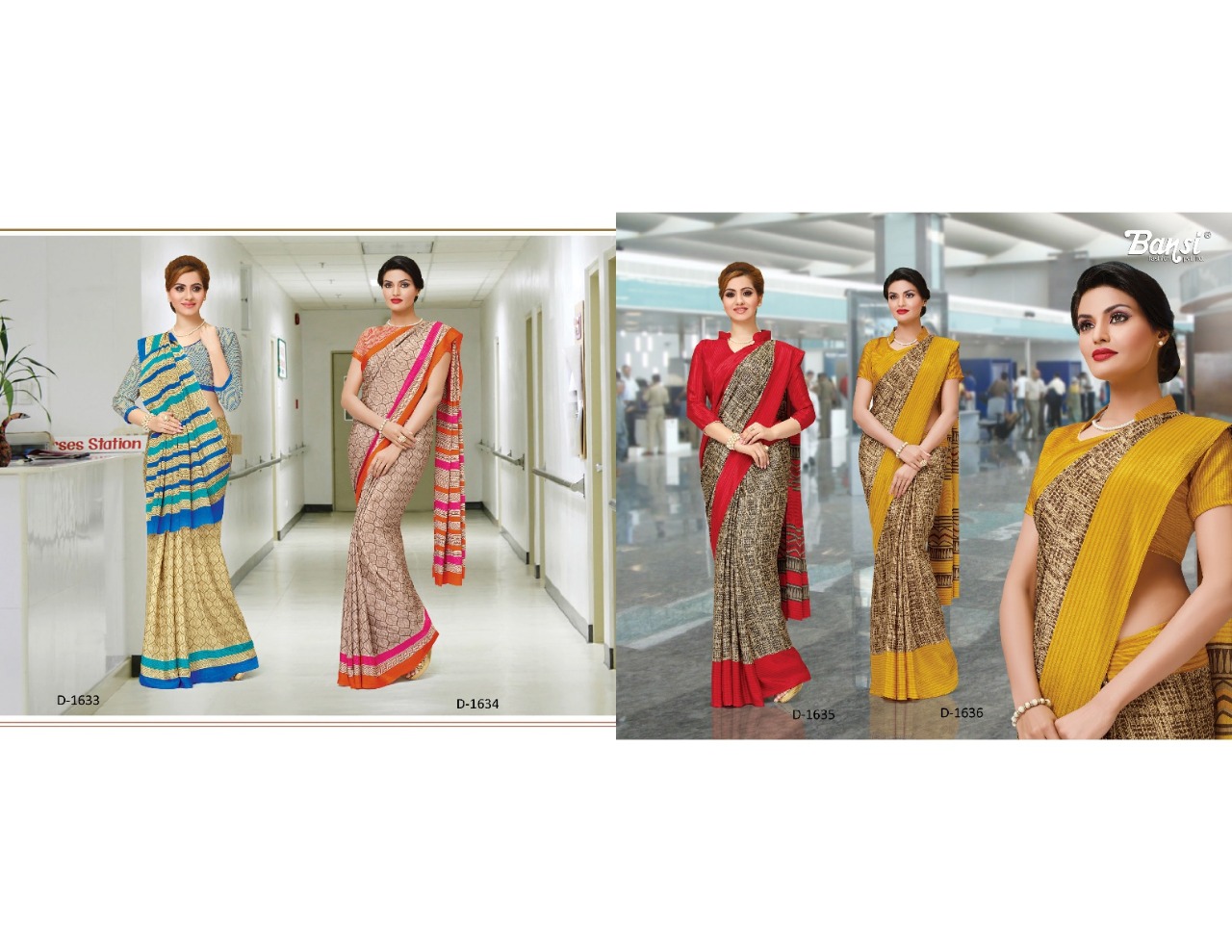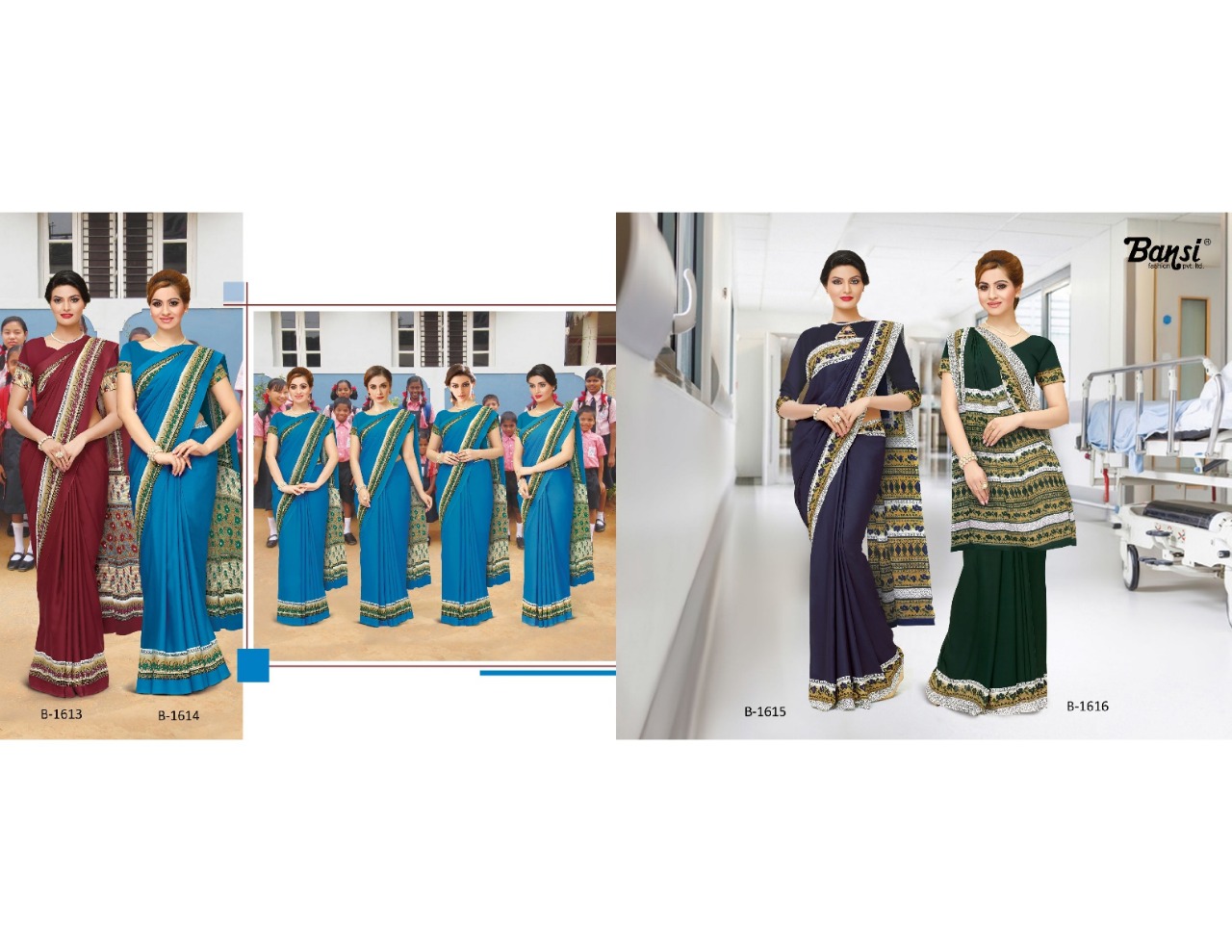 Bansi Uniform 1601 Series Fancy Printed Uniform Saree Collection Wholesale Dealer And Supplier Surat