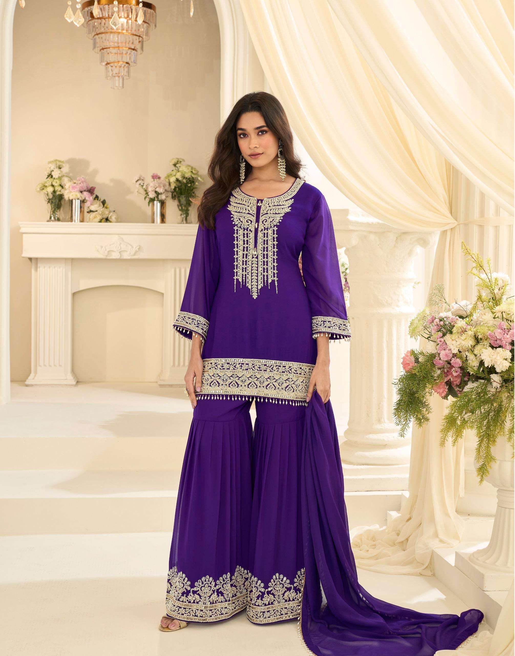 FABRIC - PREMIUM REAL GEROGETTE ( LATEST TRENDY PREMIUM FABRIC BEADS EMBROIDERED TOP WITH GHARARA AND BEADS LACE DUPATTA )