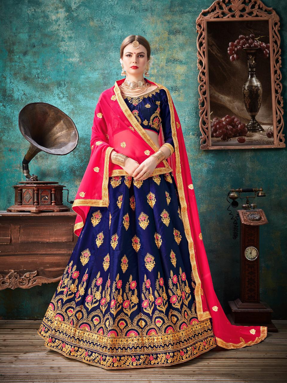 Barfi By Sanskar Style Ssilk Designer Party Wear Lehngas Wholesale Supplier Surat