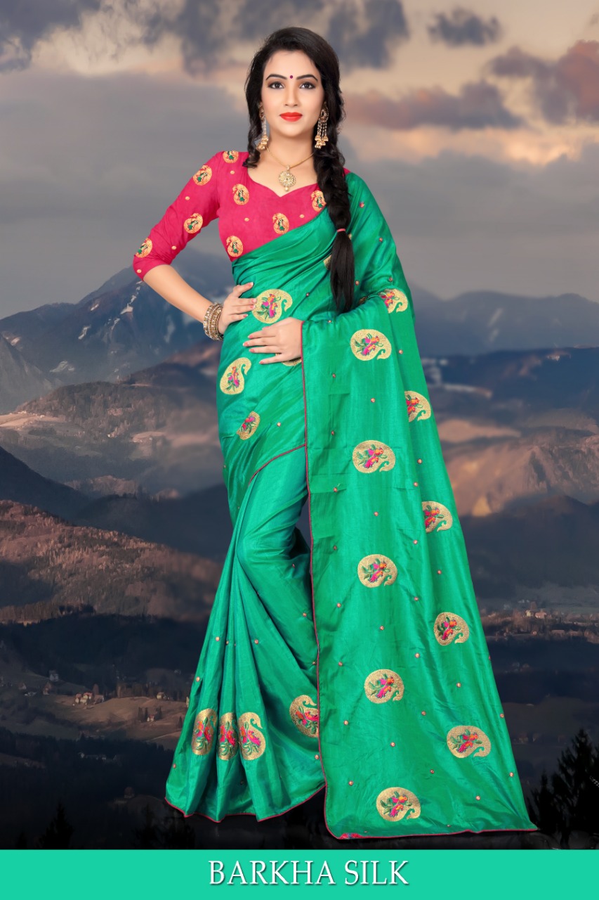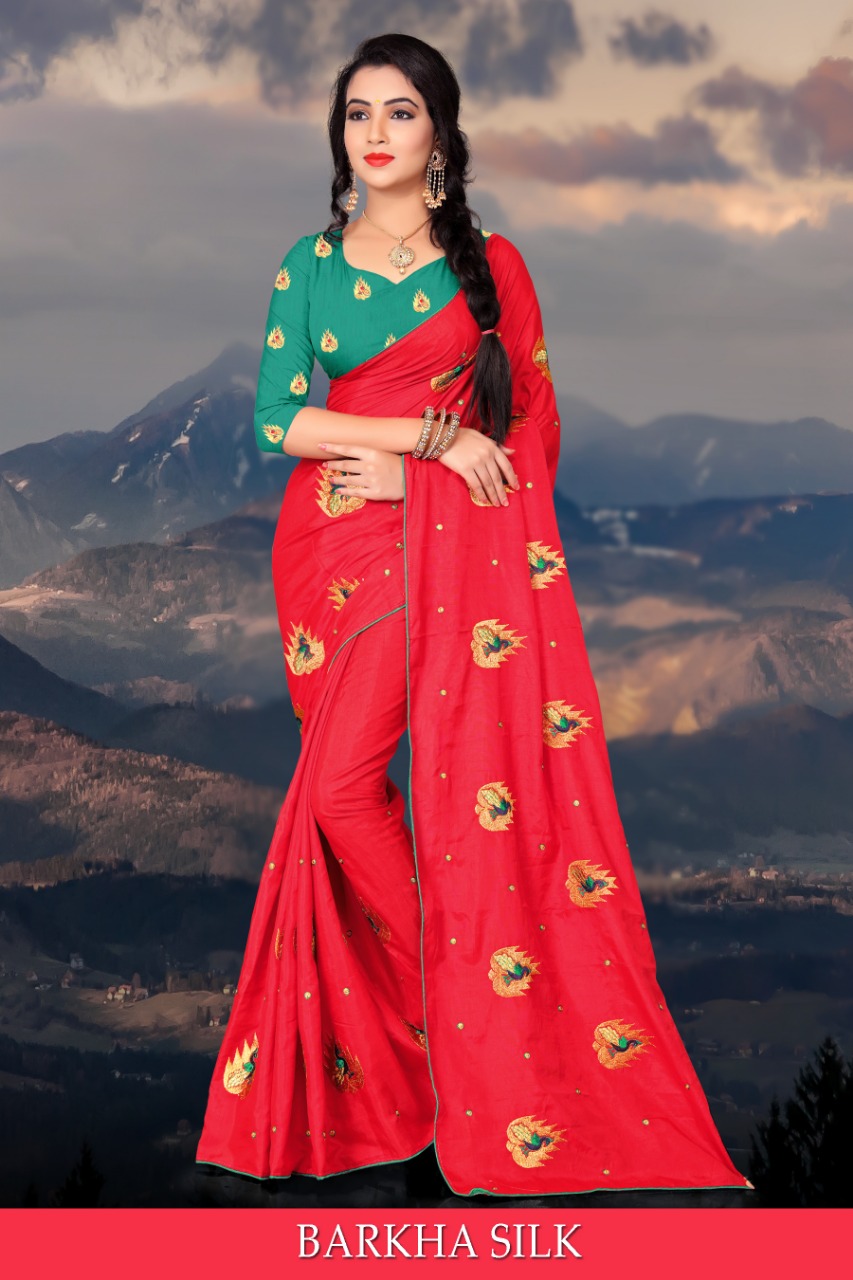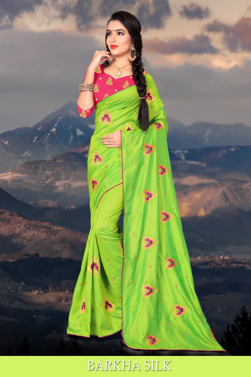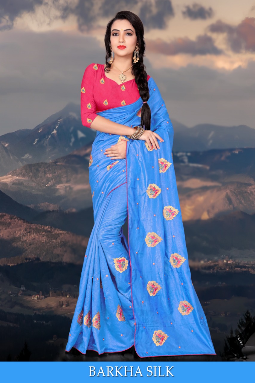 Buy Online Barkha Silk By Right One Fancy Sana Silk Embroidery Saree Catlog Wholesale Dealer And Supplier Surat 8 Pcs of Full Catalogue at Wholesale Price. Looking for Barkha Silk By Right One Fancy Sana Silk Embroidery Saree Catlog Wholesale Dealer And Supplier Surat Full Catalouge at Best Price? Buy Now Barkha Silk By Right One Fancy Sana Silk Embroidery Saree Catlog Wholesale Dealer And Supplier Surat at Wholesale Rate of Rs 5560 with Total 8 Pcs from authroized dealer and supplier of Right one Brand. Cost of Each piece is just only Rs 695 which is very low and affordable price to resale the product in your retail store ,This is Surat based Wholesale Supplier & Dealer of Right one Brand. Click on Brand name to Know more about Right one Brand's products.Call or Whatsapp on 9898838984 for booking or enquiry