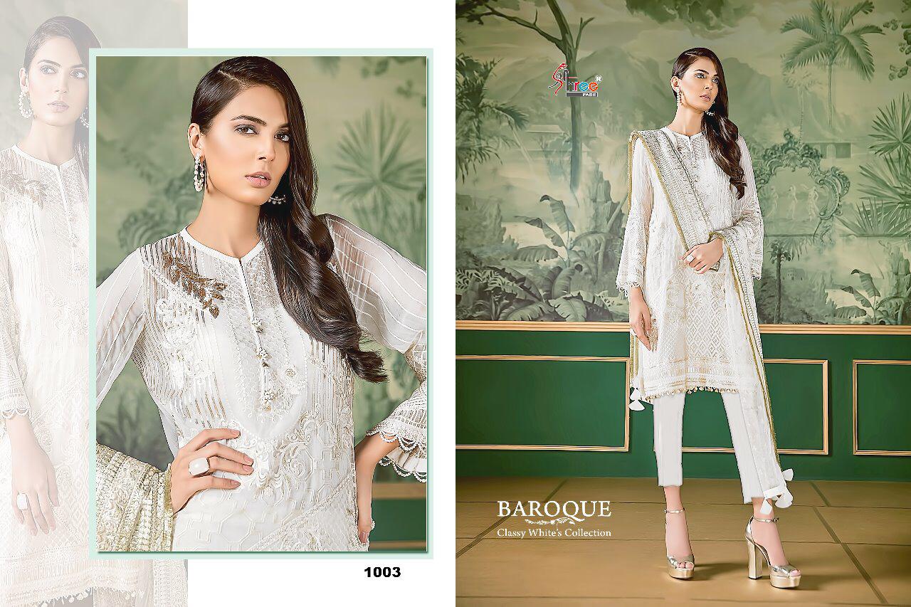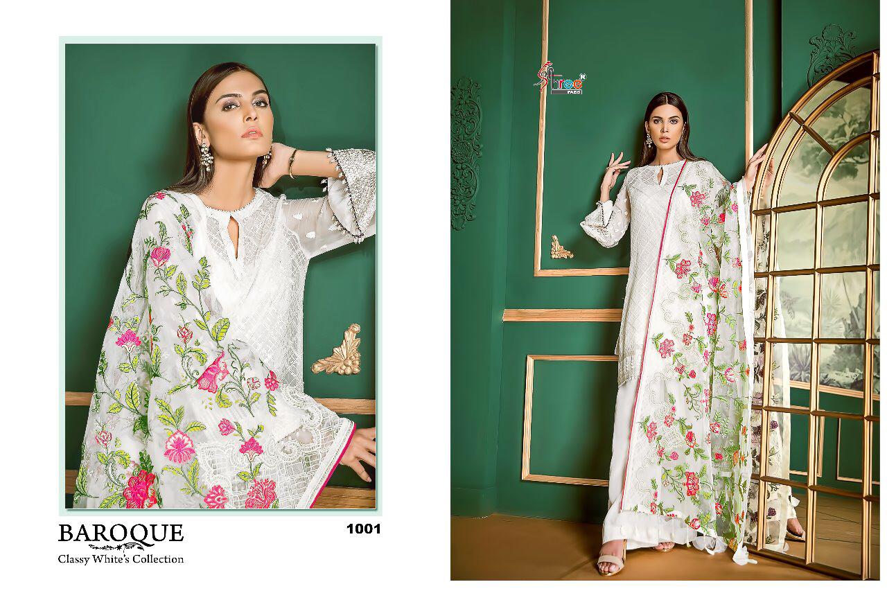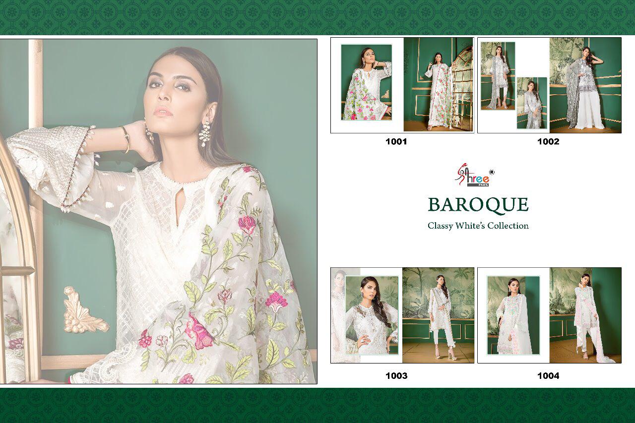 BAROQUE CLASSY WHITE COLLECTION TOP FOX JORGET BOTTOM INNER SANTOON DUPPTA NET NAJMIN DES 4 RATE 1151 SHREE FABS SURAT |