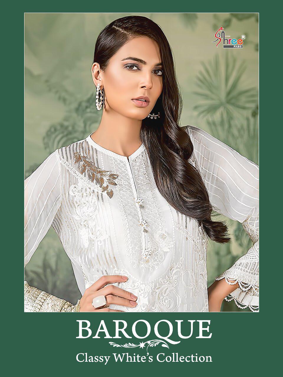 Baroque Classy White Collection By Shree Fabs Georgette Embroidered Designer Party Wear Pakistani Suits Wholesale Supplier And Dealer Gujarat