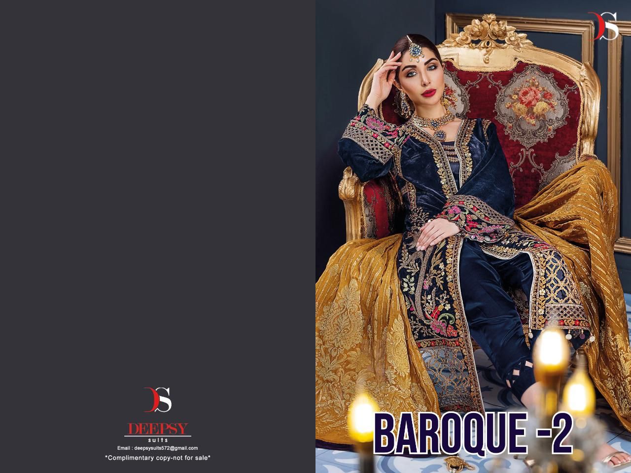 Buy Online Baroque Velvet Vol 2 By Deepsy Suits Pakistani Collection Manufacturer Traders And Dealer From India 6 Pcs of Full Catalogue at Wholesale Price. Looking for Baroque Velvet Vol 2 By Deepsy Suits Pakistani Collection Manufacturer Traders And Dealer From India Full Catalouge at Best Price? Buy Now Baroque Velvet Vol 2 By Deepsy Suits Pakistani Collection Manufacturer Traders And Dealer From India at Wholesale Rate of Rs 8994 with Total 6 Pcs from authroized dealer and supplier of DEEPSY Brand. Cost of Each piece is just only Rs 1499 which is very low and affordable price to resale the product in your retail store ,This is Surat based Wholesale Supplier & Dealer of DEEPSY Brand. Click on Brand name to Know more about DEEPSY Brand's products.Call or Whatsapp on 9898838984 for booking or enquiry