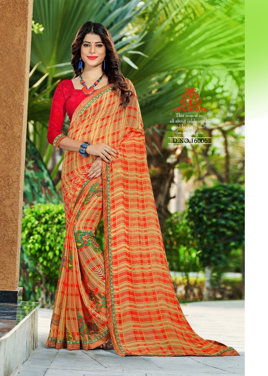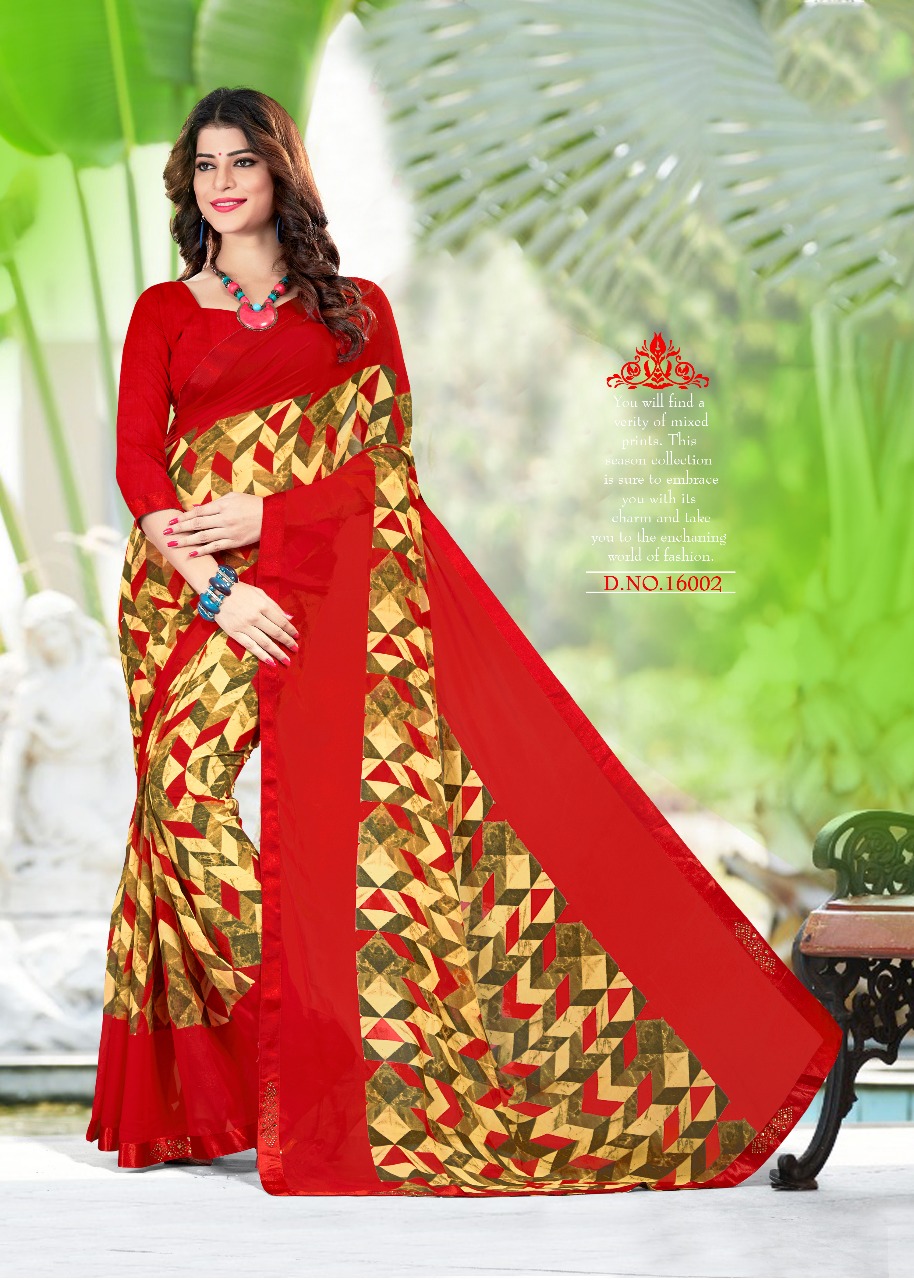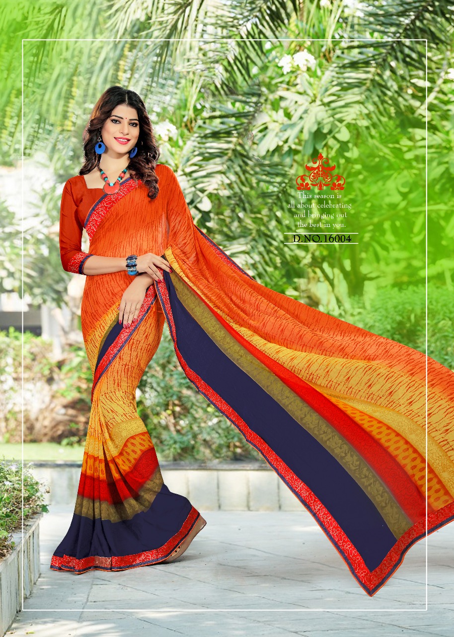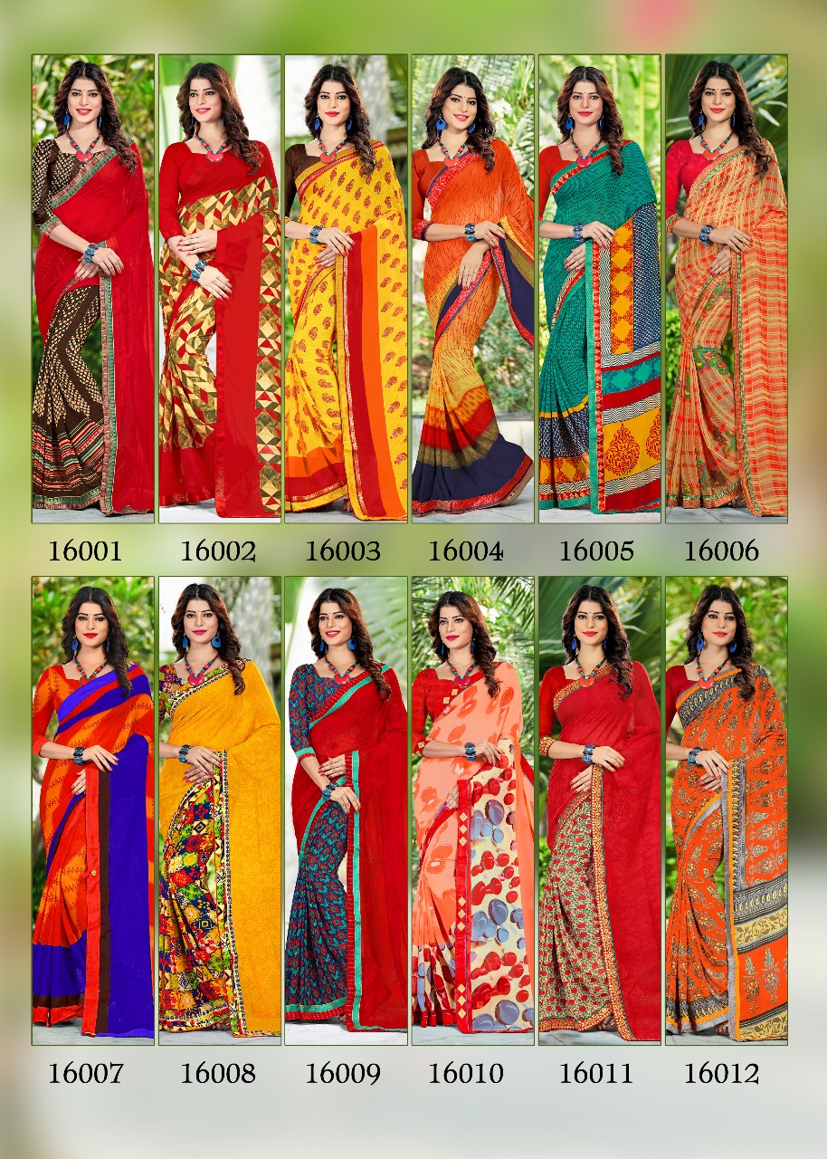 Buy Online Barsaat Series 16001 To 16012 By Amage Designer Georgette Printed Sarees Wholesale Supplier And Dealer Gujarat 12 Pcs of Full Catalogue at Wholesale Price. Looking for Barsaat Series 16001 To 16012 By Amage Designer Georgette Printed Sarees Wholesale Supplier And Dealer Gujarat Full Catalouge at Best Price? Buy Now Barsaat Series 16001 To 16012 By Amage Designer Georgette Printed Sarees Wholesale Supplier And Dealer Gujarat at Wholesale Rate of Rs 5520 with Total 12 Pcs from authroized dealer and supplier of Brand. Cost of Each piece is just only Rs 460 which is very low and affordable price to resale the product in your retail store ,This is Surat based Wholesale Supplier & Dealer of Brand. Click on Brand name to Know more about Brand's products.Call or Whatsapp on 9898838984 for booking or enquiry