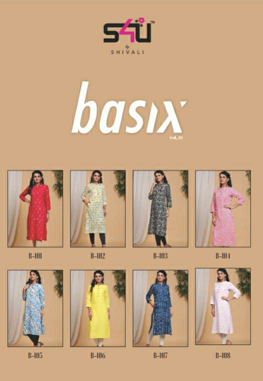 Buy Online Basix By S4u Shivali Beutiful Designer Kurtis Wholesale Supplier And Dealer Gujarat 8 Pcs of Full Catalogue at Wholesale Price. Looking for Basix By S4u Shivali Beutiful Designer Kurtis Wholesale Supplier And Dealer Gujarat Full Catalouge at Best Price? Buy Now Basix By S4u Shivali Beutiful Designer Kurtis Wholesale Supplier And Dealer Gujarat at Wholesale Rate of Rs 2360 with Total 8 Pcs from authroized dealer and supplier of S4U Brand. Cost of Each piece is just only Rs 295 which is very low and affordable price to resale the product in your retail store ,This is Surat based Wholesale Supplier & Dealer of S4U Brand. Click on Brand name to Know more about S4U Brand's products.Call or Whatsapp on 9898838984 for booking or enquiry