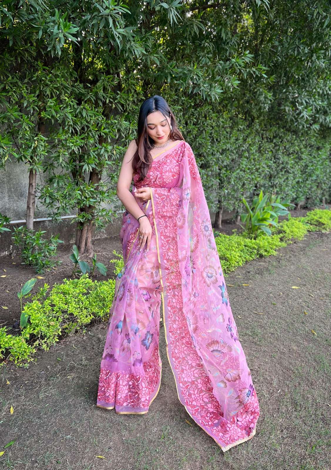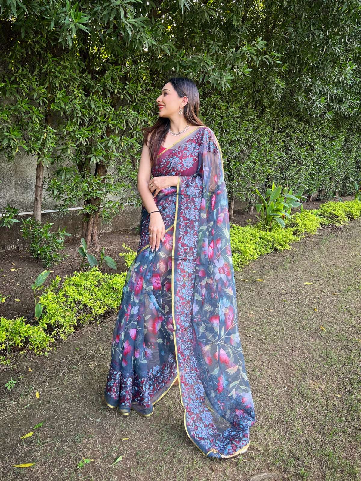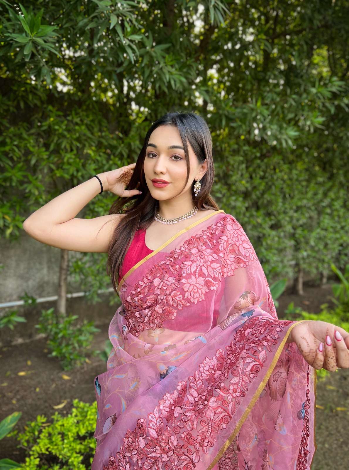 Catalog Name : *BAVRI* No of Pcs : 3 Fabric : Organza Work : Soft pure Organza saree with weaving gold border Work : Viscose embroidery work of thread in all over the saree