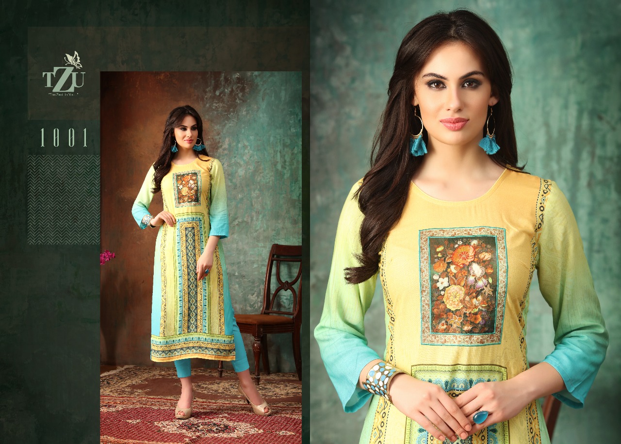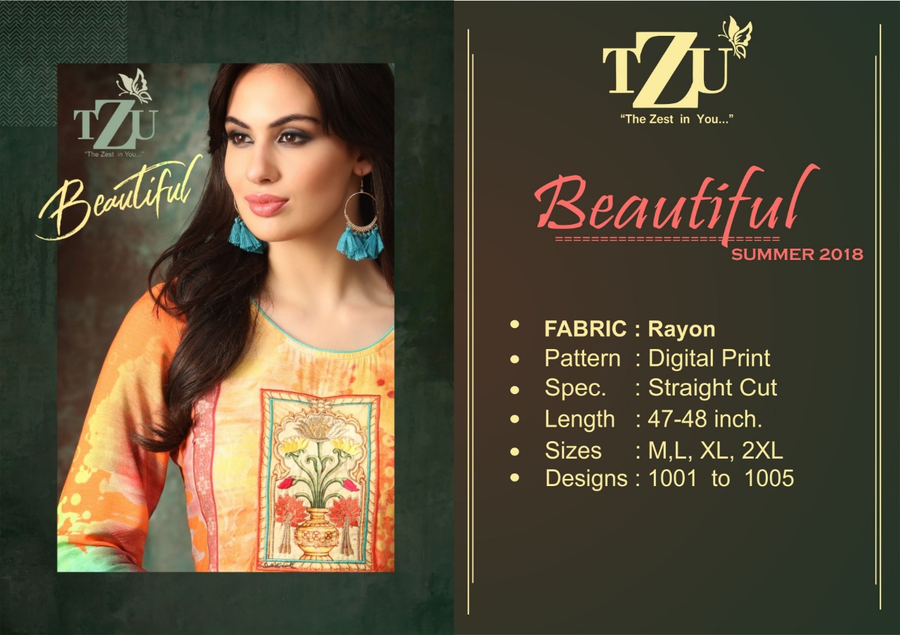 Beautiful By Tzu 1001 Series Fancy Reyon Digital Printed Kurti Catlog Wholesale Dealer Surat