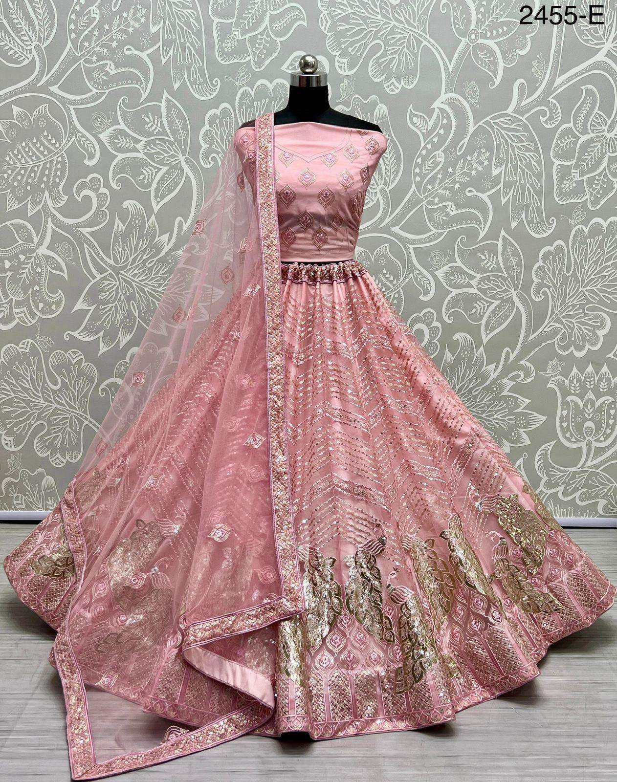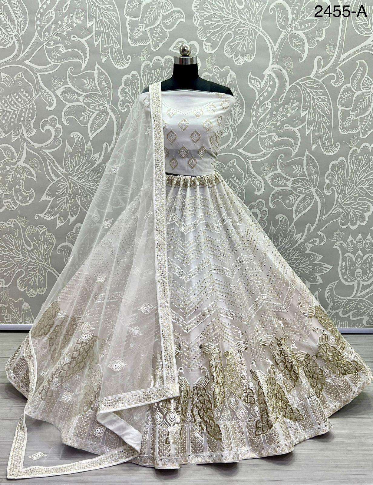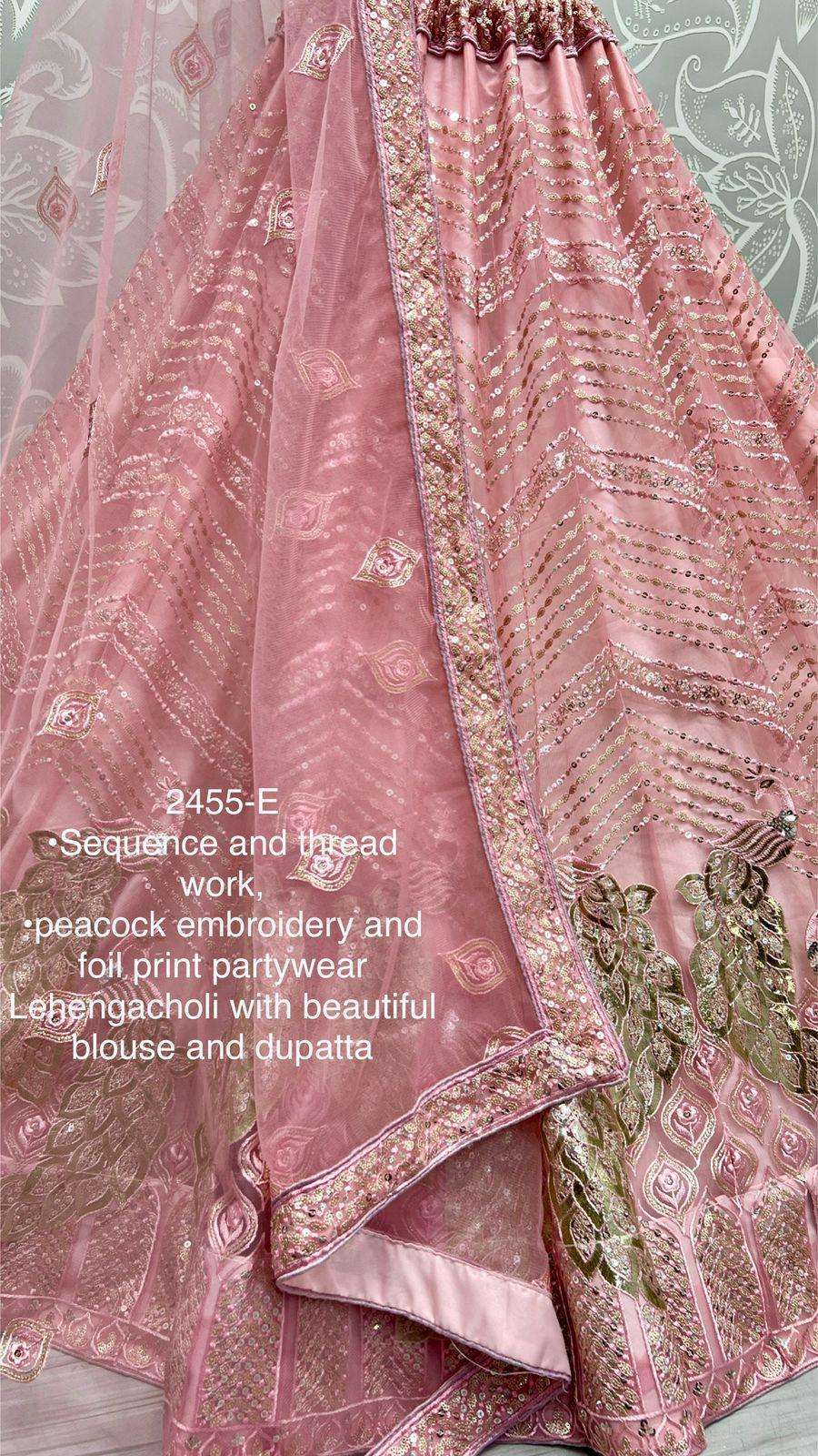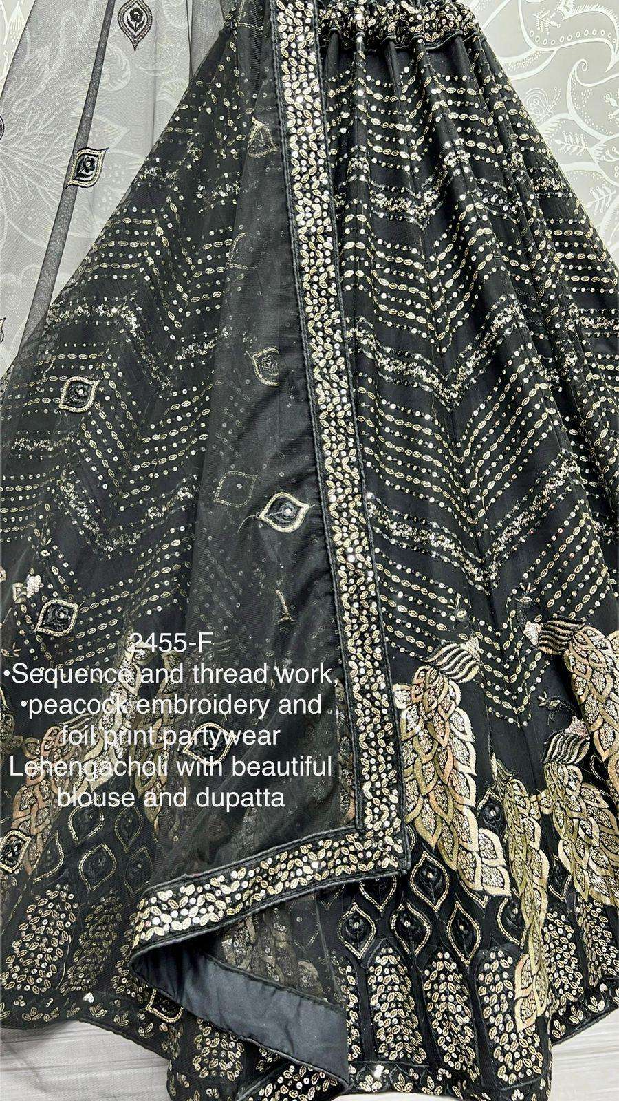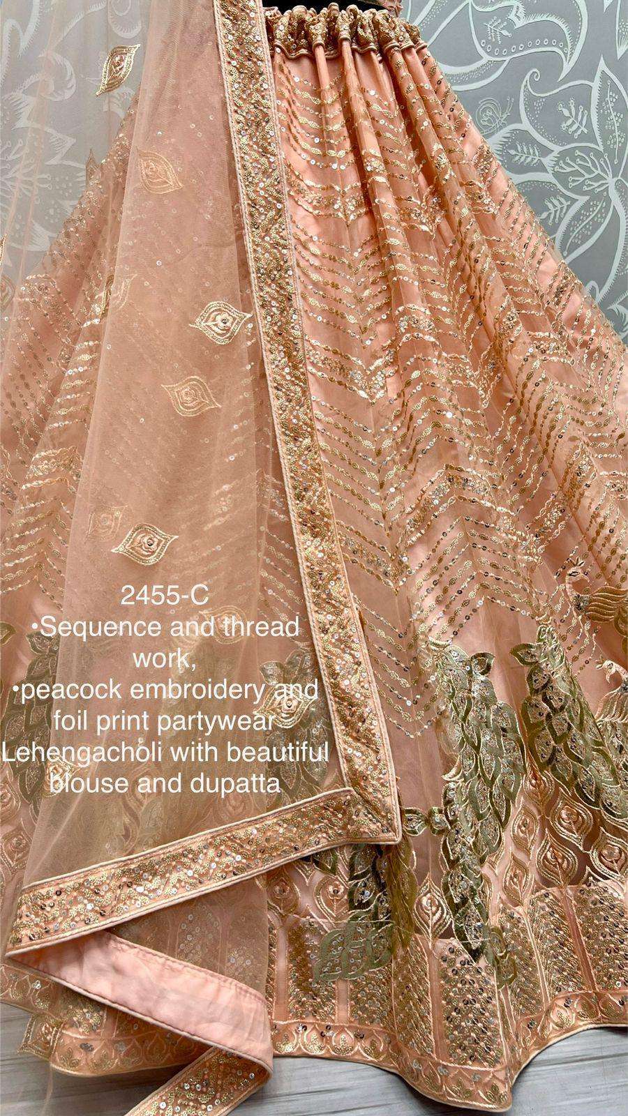 Code : 2455 Lehenga : Fabric - Heavy Net Work - Thread work Zari embroidered Sequins and foil work Stitching - standard cancan and canvas attached Size - free size up to 42