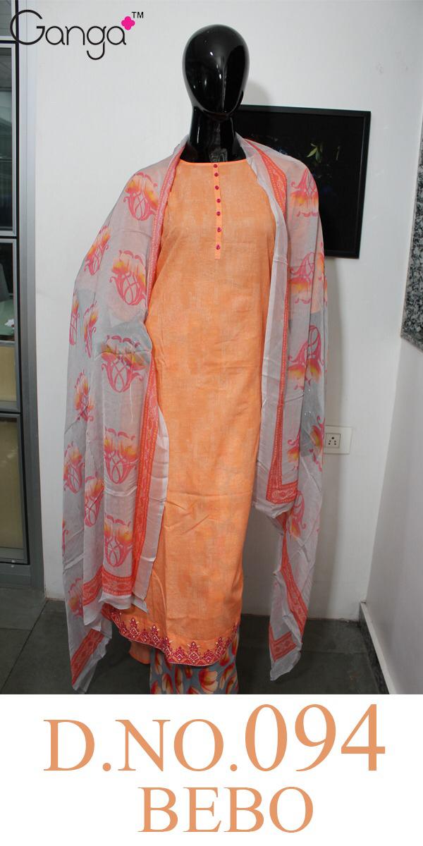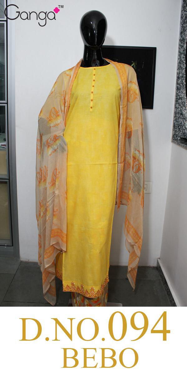 Buy Online Bebo 094 By Ganga Cotton Embroidered Suits Wholesale Supplier Gujarat 4 Pcs of Full Catalogue at Wholesale Price. Looking for Bebo 094 By Ganga Cotton Embroidered Suits Wholesale Supplier Gujarat Full Catalouge at Best Price? Buy Now Bebo 094 By Ganga Cotton Embroidered Suits Wholesale Supplier Gujarat at Wholesale Rate of Rs 4940 with Total 4 Pcs from authroized dealer and supplier of GANGA Brand. Cost of Each piece is just only Rs 1235 which is very low and affordable price to resale the product in your retail store ,This is Surat based Wholesale Supplier & Dealer of GANGA Brand. Click on Brand name to Know more about GANGA Brand's products.Call or Whatsapp on 9898838984 for booking or enquiry