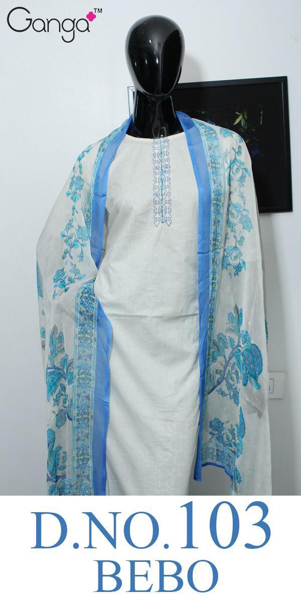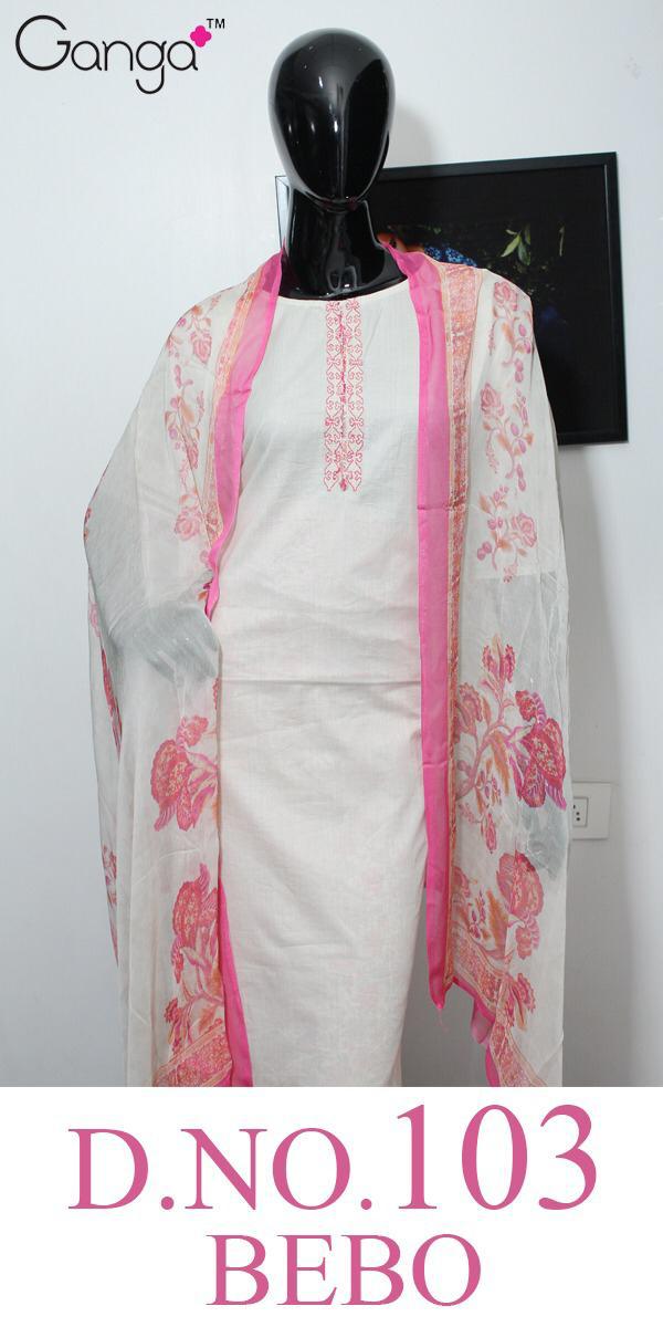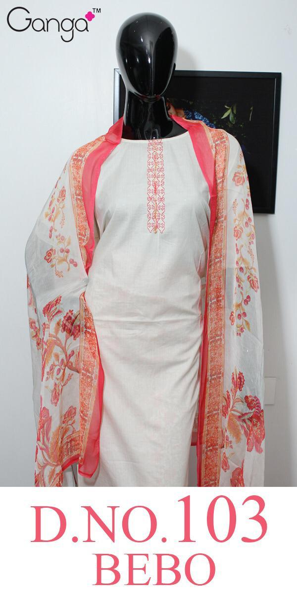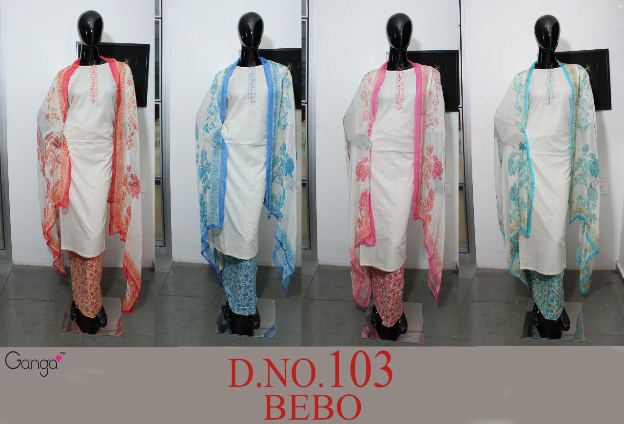 Buy Online Bebo 103 By Ganga Cotton Printed Suits Wholesale Supplier Gujarat 4 Pcs of Full Catalogue at Wholesale Price. Looking for Bebo 103 By Ganga Cotton Printed Suits Wholesale Supplier Gujarat Full Catalouge at Best Price? Buy Now Bebo 103 By Ganga Cotton Printed Suits Wholesale Supplier Gujarat at Wholesale Rate of Rs 4940 with Total 4 Pcs from authroized dealer and supplier of GANGA Brand. Cost of Each piece is just only Rs 1235 which is very low and affordable price to resale the product in your retail store ,This is Surat based Wholesale Supplier & Dealer of GANGA Brand. Click on Brand name to Know more about GANGA Brand's products.Call or Whatsapp on 9898838984 for booking or enquiry