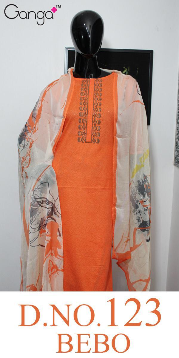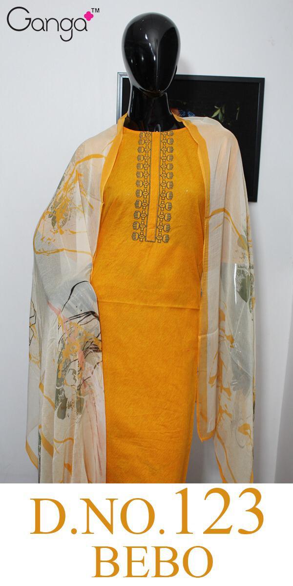 Buy Online Bebo 123 By Ganga Cotton Embroidered Suits Wholesale Supplier Gujarat 4 Pcs of Full Catalogue at Wholesale Price. Looking for Bebo 123 By Ganga Cotton Embroidered Suits Wholesale Supplier Gujarat Full Catalouge at Best Price? Buy Now Bebo 123 By Ganga Cotton Embroidered Suits Wholesale Supplier Gujarat at Wholesale Rate of Rs 4940 with Total 4 Pcs from authroized dealer and supplier of GANGA Brand. Cost of Each piece is just only Rs 1235 which is very low and affordable price to resale the product in your retail store ,This is Surat based Wholesale Supplier & Dealer of GANGA Brand. Click on Brand name to Know more about GANGA Brand's products.Call or Whatsapp on 9898838984 for booking or enquiry