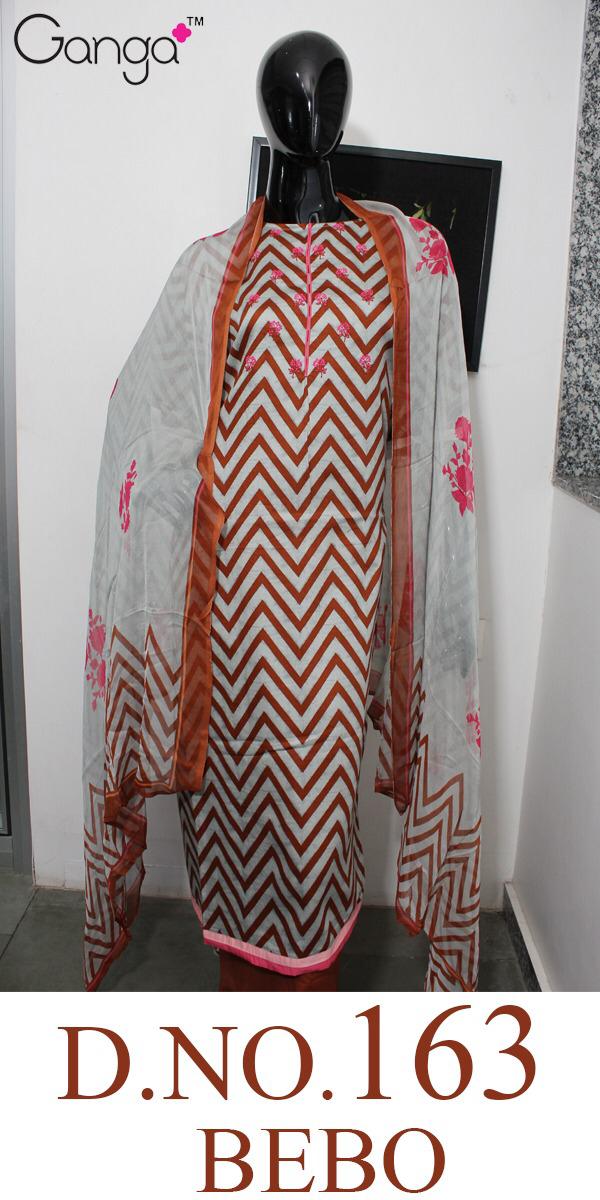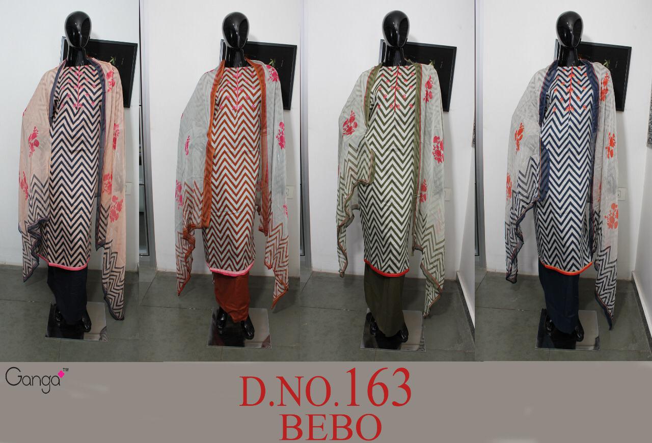 Buy Online Bebo 163 By Ganga Satin Embroidered Suits Wholesale Supplier Gujarat 4 Pcs of Full Catalogue at Wholesale Price. Looking for Bebo 163 By Ganga Satin Embroidered Suits Wholesale Supplier Gujarat Full Catalouge at Best Price? Buy Now Bebo 163 By Ganga Satin Embroidered Suits Wholesale Supplier Gujarat at Wholesale Rate of Rs 4940 with Total 4 Pcs from authroized dealer and supplier of GANGA Brand. Cost of Each piece is just only Rs 1235 which is very low and affordable price to resale the product in your retail store ,This is Surat based Wholesale Supplier & Dealer of GANGA Brand. Click on Brand name to Know more about GANGA Brand's products.Call or Whatsapp on 9898838984 for booking or enquiry