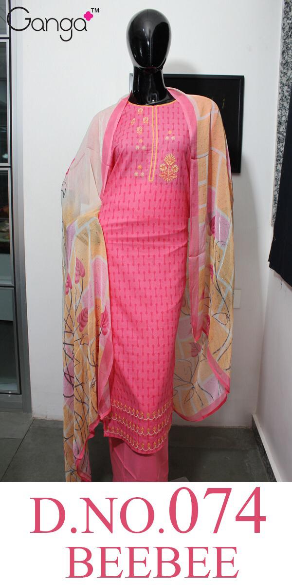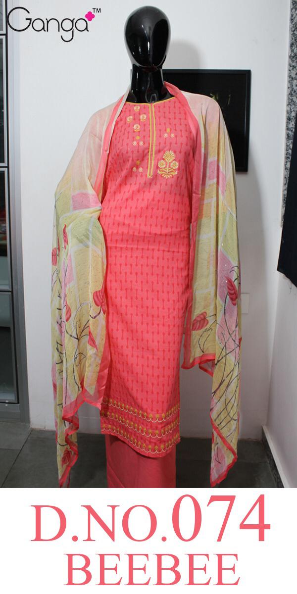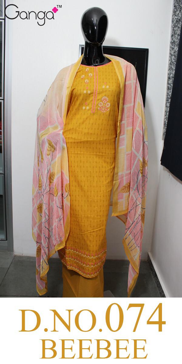 Buy Online Beebee 74 By Ganga Cotton Printed Suits Wholesale Supplier Gujarat 4 Pcs of Full Catalogue at Wholesale Price. Looking for Beebee 74 By Ganga Cotton Printed Suits Wholesale Supplier Gujarat Full Catalouge at Best Price? Buy Now Beebee 74 By Ganga Cotton Printed Suits Wholesale Supplier Gujarat at Wholesale Rate of Rs 4300 with Total 4 Pcs from authroized dealer and supplier of GANGA Brand. Cost of Each piece is just only Rs 1075 which is very low and affordable price to resale the product in your retail store ,This is Surat based Wholesale Supplier & Dealer of GANGA Brand. Click on Brand name to Know more about GANGA Brand's products.Call or Whatsapp on 9898838984 for booking or enquiry