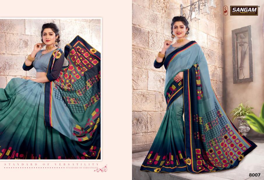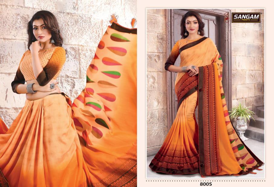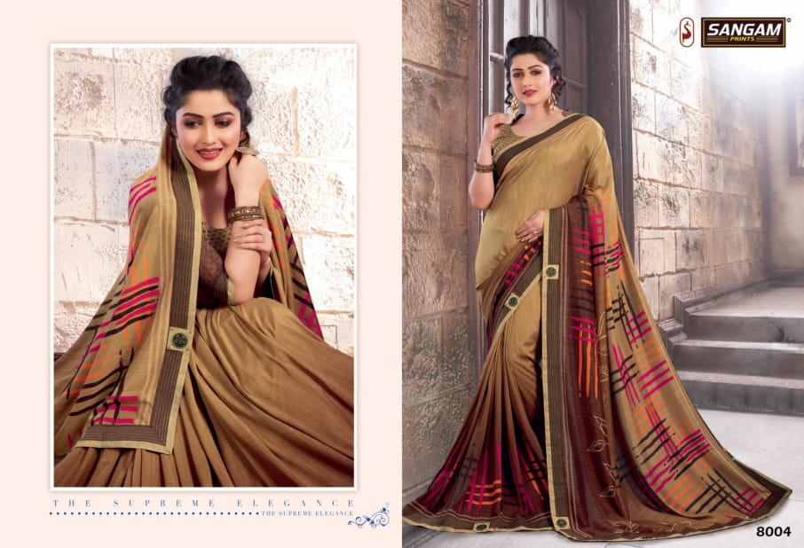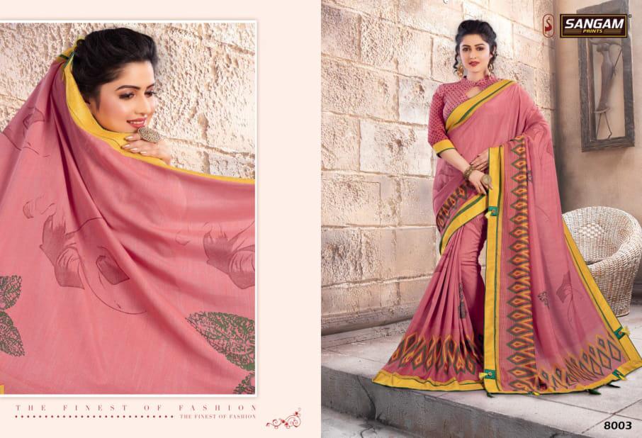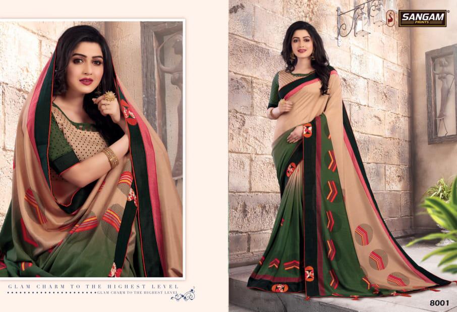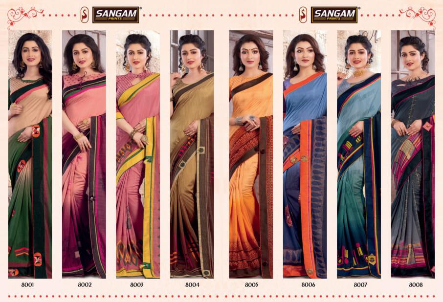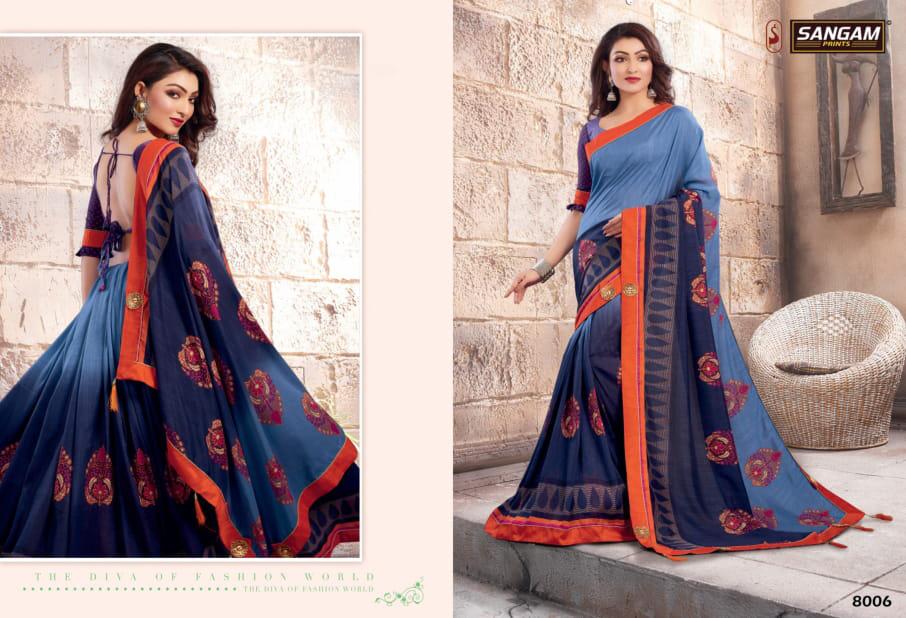 Buy Online Bela By Sangam 8001 Series Fancy Vichitra Printed Saree Collection Wholesaler Surat 8 Pcs of Full Catalogue at Wholesale Price. Looking for Bela By Sangam 8001 Series Fancy Vichitra Printed Saree Collection Wholesaler Surat Full Catalouge at Best Price? Buy Now Bela By Sangam 8001 Series Fancy Vichitra Printed Saree Collection Wholesaler Surat at Wholesale Rate of Rs 6000 with Total 8 Pcs from authroized dealer and supplier of SANGAM Brand. Cost of Each piece is just only Rs 750 which is very low and affordable price to resale the product in your retail store ,This is Surat based Wholesale Supplier & Dealer of SANGAM Brand. Click on Brand name to Know more about SANGAM Brand's products.Call or Whatsapp on 9898838984 for booking or enquiry