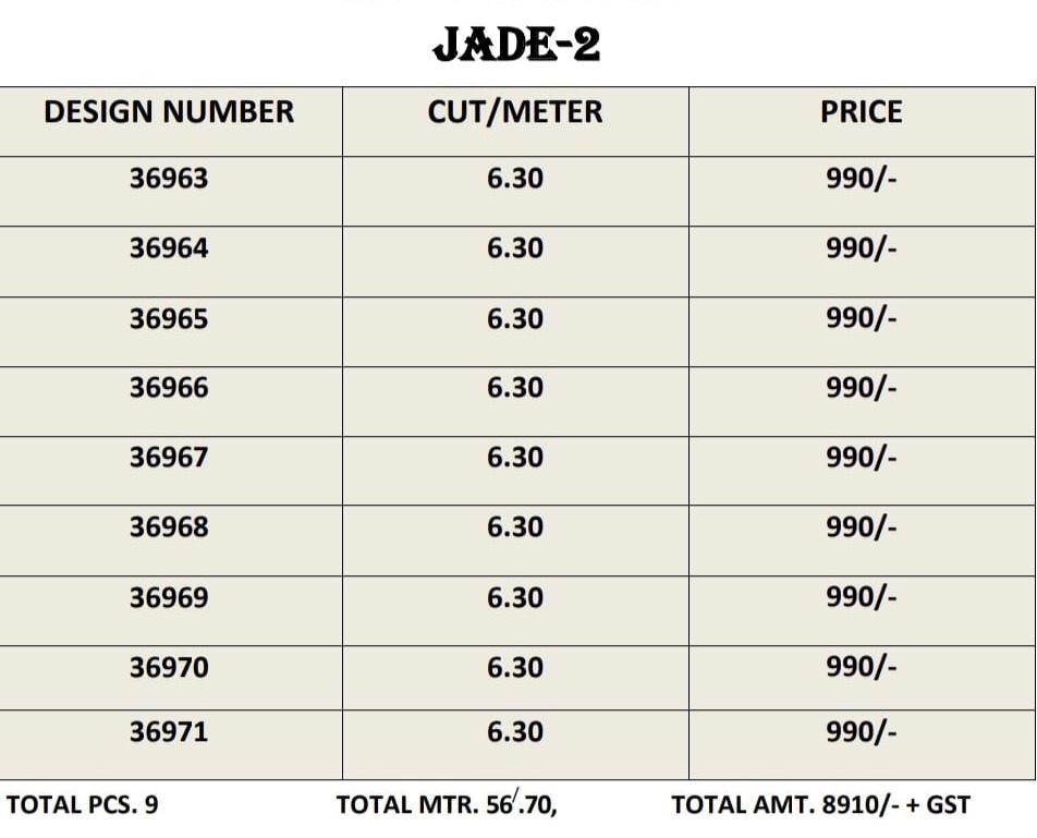 Buy Online Bela Jade 2 Series 36963 Designer Sarees Wholesale Supplier And Dealer Gujarat 9 Pcs of Full Catalogue at Wholesale Price. Looking for Bela Jade 2 Series 36963 Designer Sarees Wholesale Supplier And Dealer Gujarat Full Catalouge at Best Price? Buy Now Bela Jade 2 Series 36963 Designer Sarees Wholesale Supplier And Dealer Gujarat at Wholesale Rate of Rs 8910 with Total 9 Pcs from authroized dealer and supplier of BELA Brand. Cost of Each piece is just only Rs 990 which is very low and affordable price to resale the product in your retail store ,This is Surat based Wholesale Supplier & Dealer of BELA Brand. Click on Brand name to Know more about BELA Brand's products.Call or Whatsapp on 9898838984 for booking or enquiry