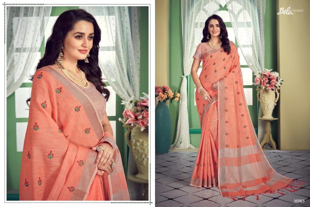 Brand - BELA . Type- Saree. Catlog name - JADE-2 P linen work . Set to set. GST 5 Percent Extra. Delivery from today |