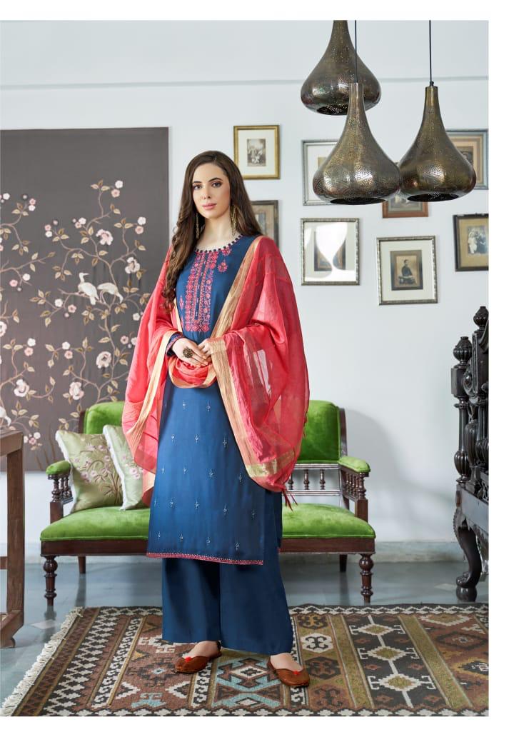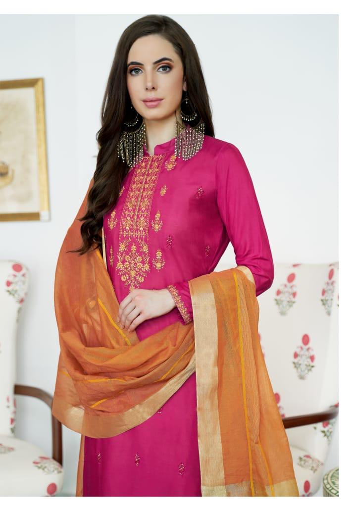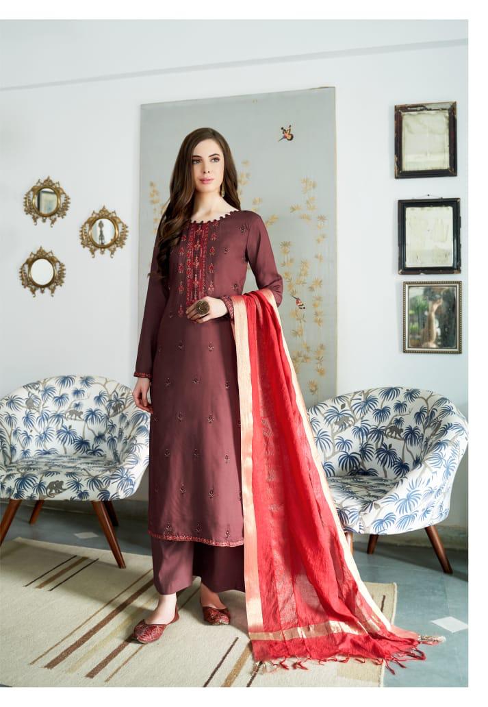 Bela Jazba Viscose muslin embroidery work with pure cotton Dupatta Price- 1350/- |