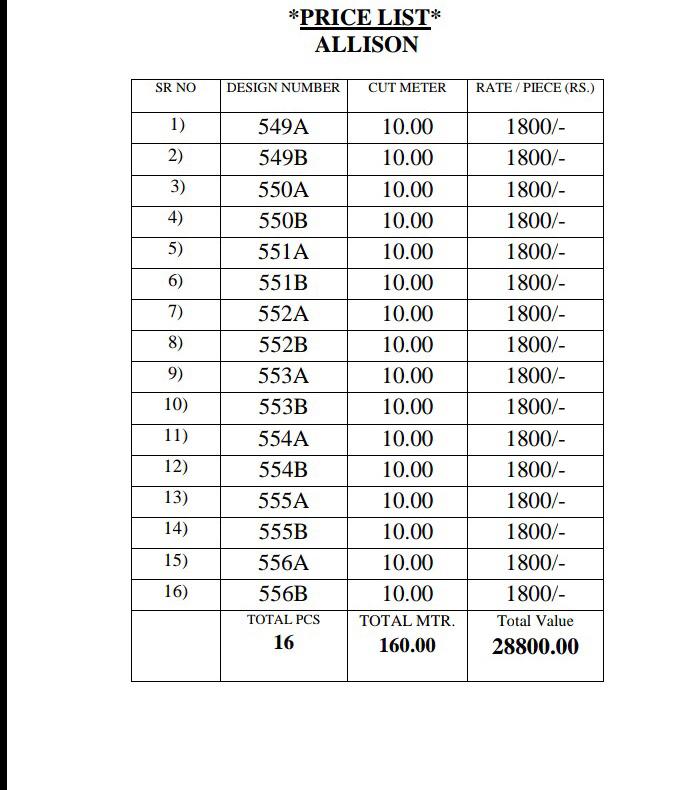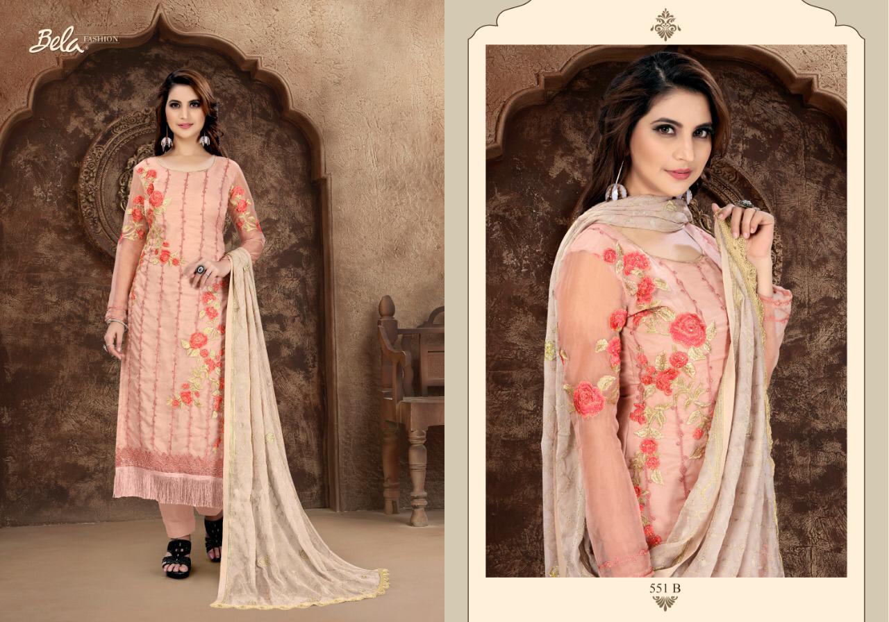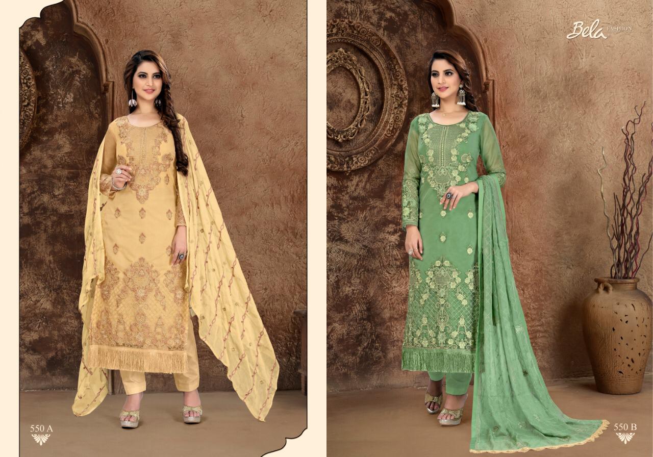 Brand - Bela . Type - Suit . Series - 549 A B to 556 A B. * set & Loose & Singel & Singel * Single Extra 100 on company price list GST 5 Percent Extra. Delivery- Running |