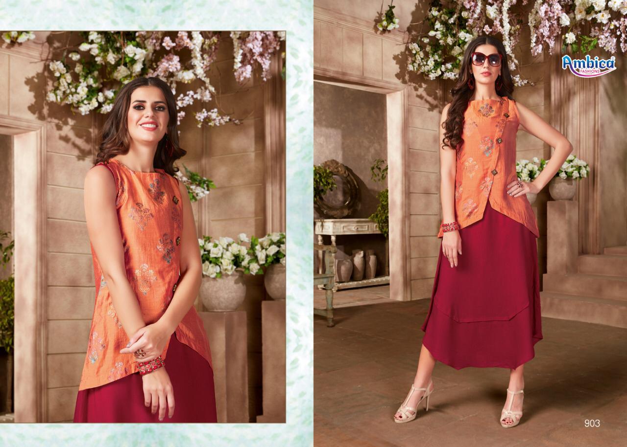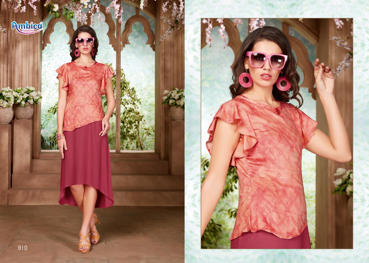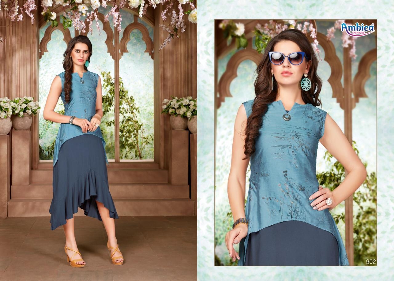Belista By Ambica Reyon Designer Kurtis Wholesale Supplier Gujarat