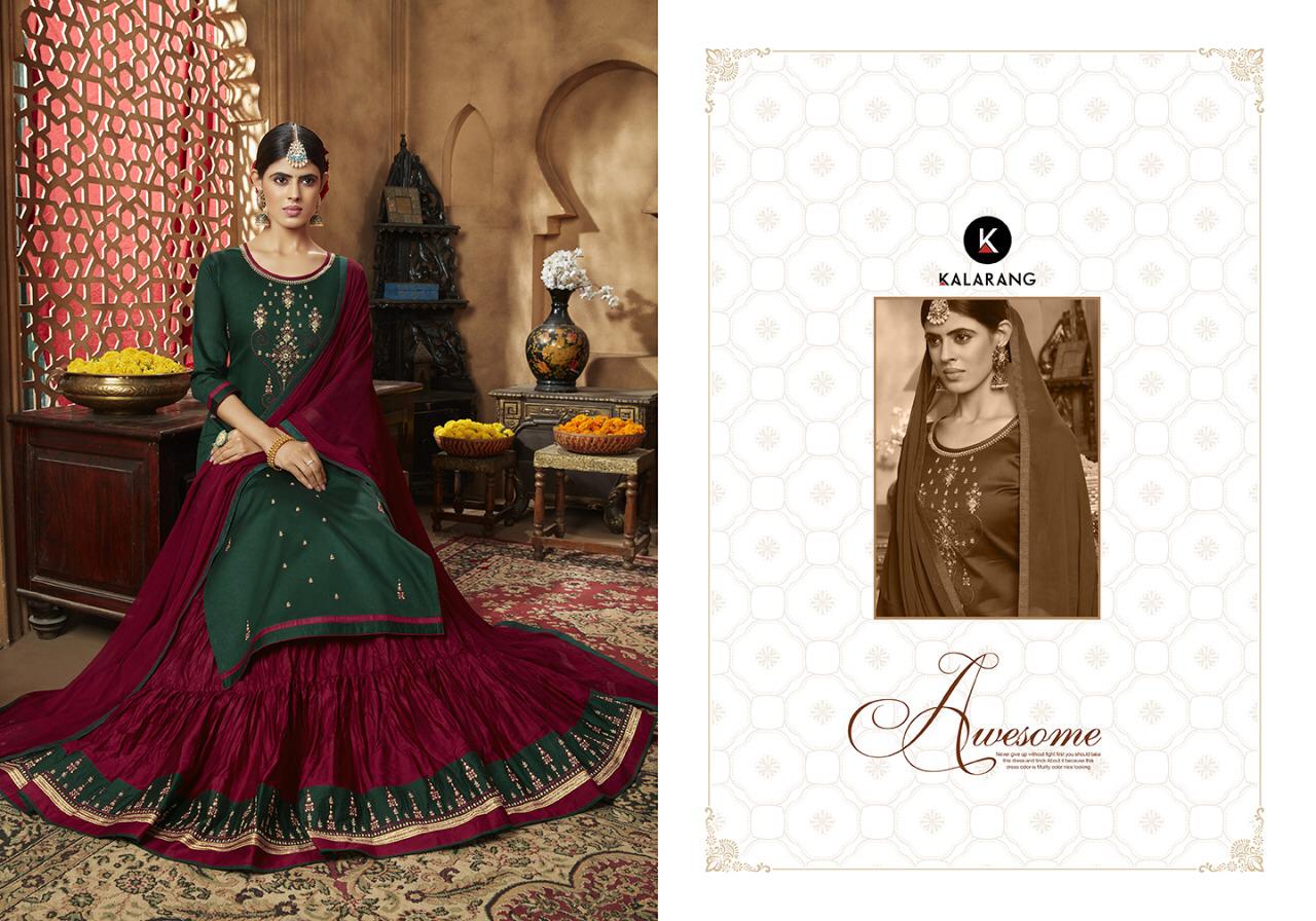 ? *Kalarang.* has launching *Combo* Two Catalogs _Catalog name_ : *Bellona Vol - 11* & *Bellona (Prime) Vol - 11* ? _Fabric Details_ ? ?Top:- JAM SILK COTTON WITH EMBROIDERY WORK ?Bottom:- PURE COTTON LEHENGA WITH EMBROIDERY WORK CRUSHED READY WEAR ?Dupatta:- NAZNEEN ?Total Design:- 4 Rate - 899 per Pcs . Set to set. GST 5 Percent Extra ?Dispatching 5 to 6 days later ?Booking started from now... ?Order yours soon.... |
