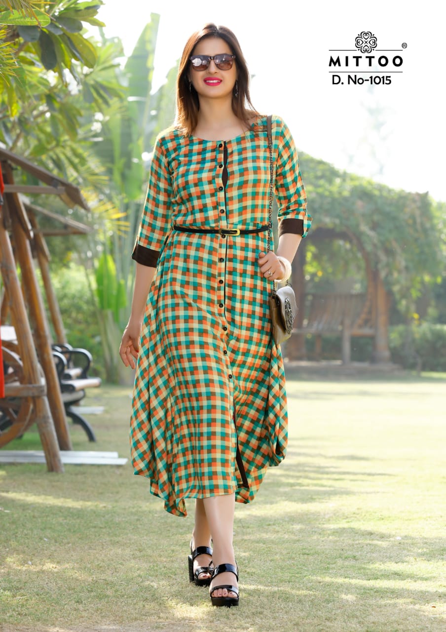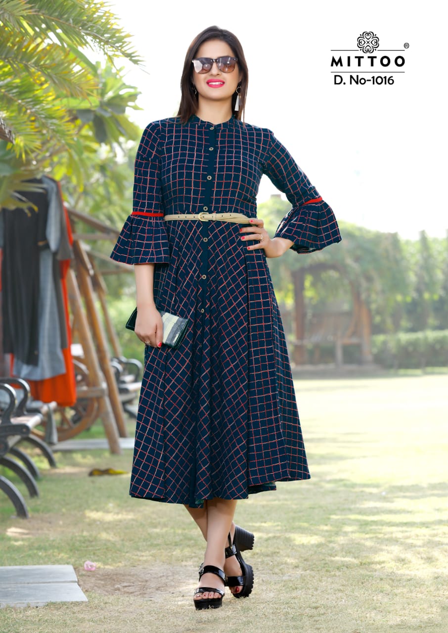 Buy Online Belt By Mittoo Reyon Printed Kurtis Collection Wholesale Supplier Gujarat 5 Pcs of Full Catalogue at Wholesale Price. Looking for Belt By Mittoo Reyon Printed Kurtis Collection Wholesale Supplier Gujarat Full Catalouge at Best Price? Buy Now Belt By Mittoo Reyon Printed Kurtis Collection Wholesale Supplier Gujarat at Wholesale Rate of Rs 3450 with Total 5 Pcs from authroized dealer and supplier of MITTOO Brand. Cost of Each piece is just only Rs 690 which is very low and affordable price to resale the product in your retail store ,This is Surat based Wholesale Supplier & Dealer of MITTOO Brand. Click on Brand name to Know more about MITTOO Brand's products.Call or Whatsapp on 9898838984 for booking or enquiry