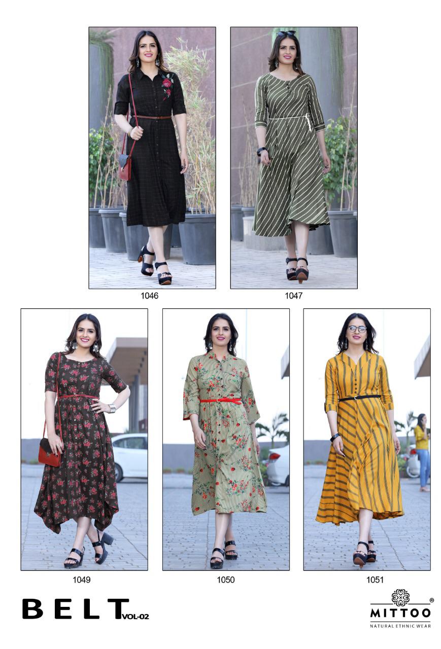 Belt Vol 2 By Mittoo Reyon Printed Kurtis Wholesale Supplier Gujarat
