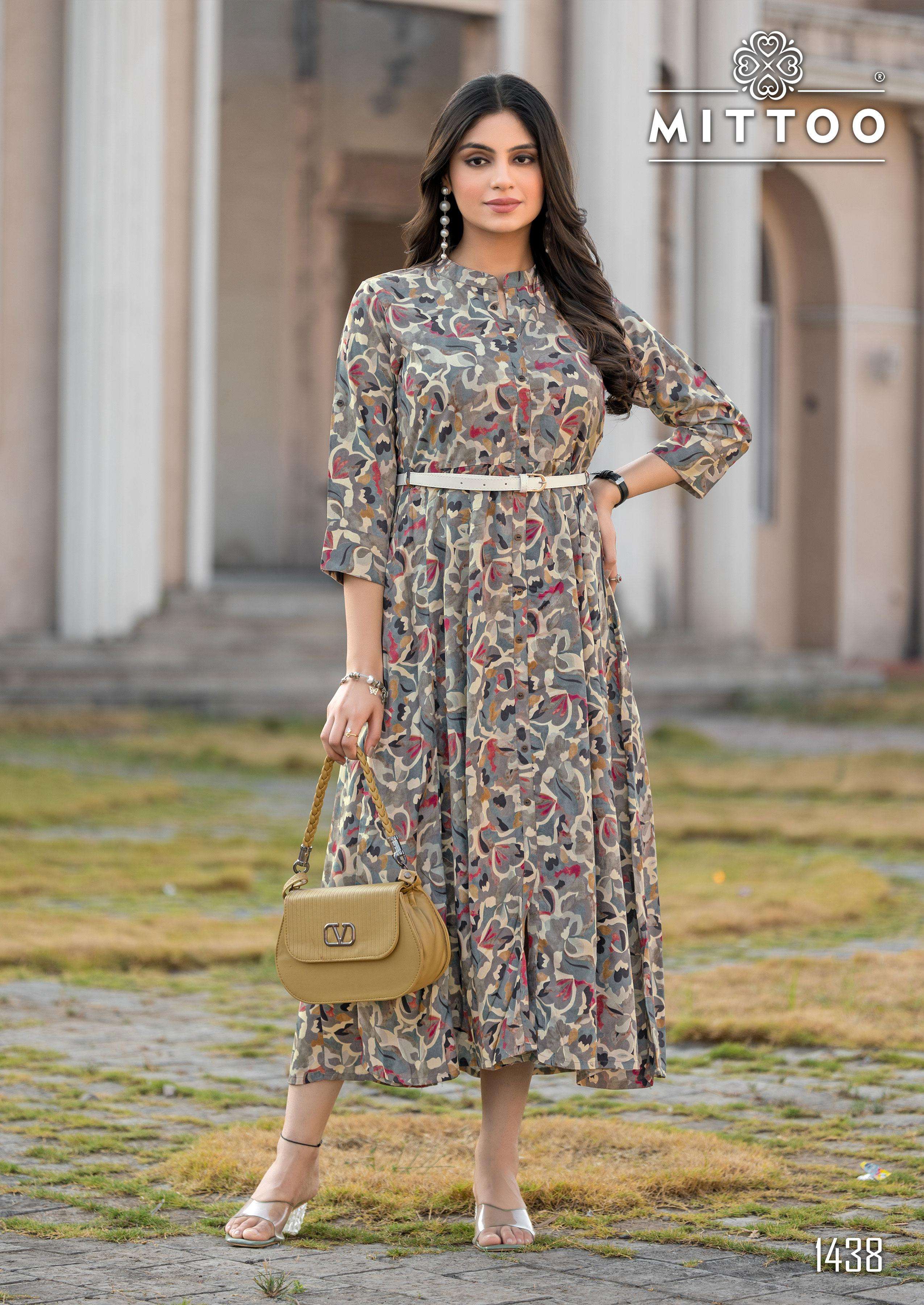 Buy Online BELT VOL 20 by MITTOO Rayon Print Kurti collection manufacturer surat 6 Pcs of Full Catalogue at Wholesale Price. Looking for BELT VOL 20 by MITTOO Rayon Print Kurti collection manufacturer surat Full Catalouge at Best Price? Buy Now BELT VOL 20 by MITTOO Rayon Print Kurti collection manufacturer surat at Wholesale Rate of Rs 3570 with Total 6 Pcs from authroized dealer and supplier of MITTOO Brand. Cost of Each piece is just only Rs 595 which is very low and affordable price to resale the product in your retail store ,This is Surat based Wholesale Supplier & Dealer of MITTOO Brand. Click on Brand name to Know more about MITTOO Brand's products.Call or Whatsapp on 9898838984 for booking or enquiry
